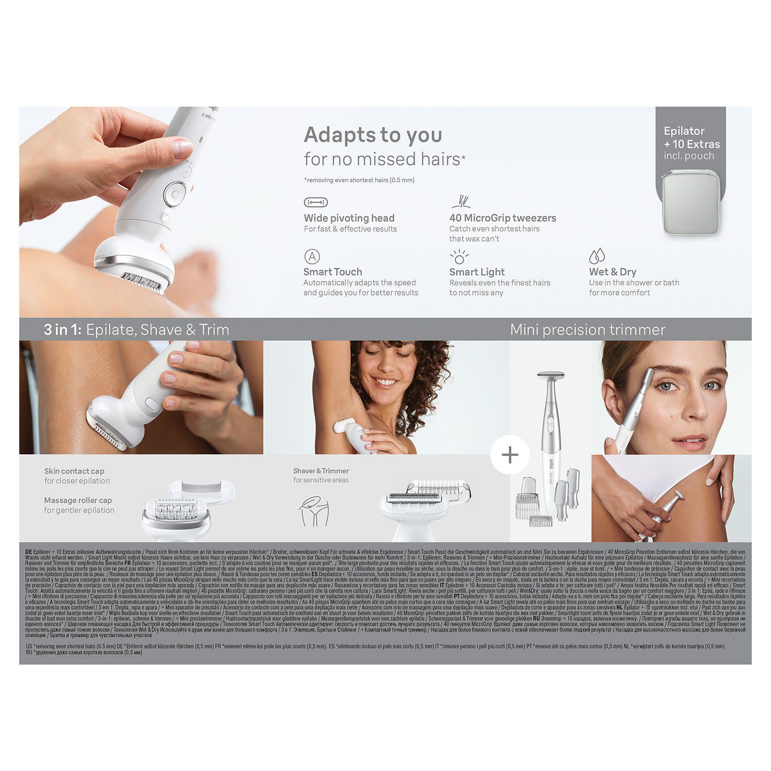 Αποτριχωτική μηχανή της Braun με τεχνολογία Smart Touch για ελεγχόμενη πίεση της επιδερμίδας και 40 τσιμπίδες MicroGrip, που αιχμαλωτίζουν και τις πιο κοντές τρίχες.