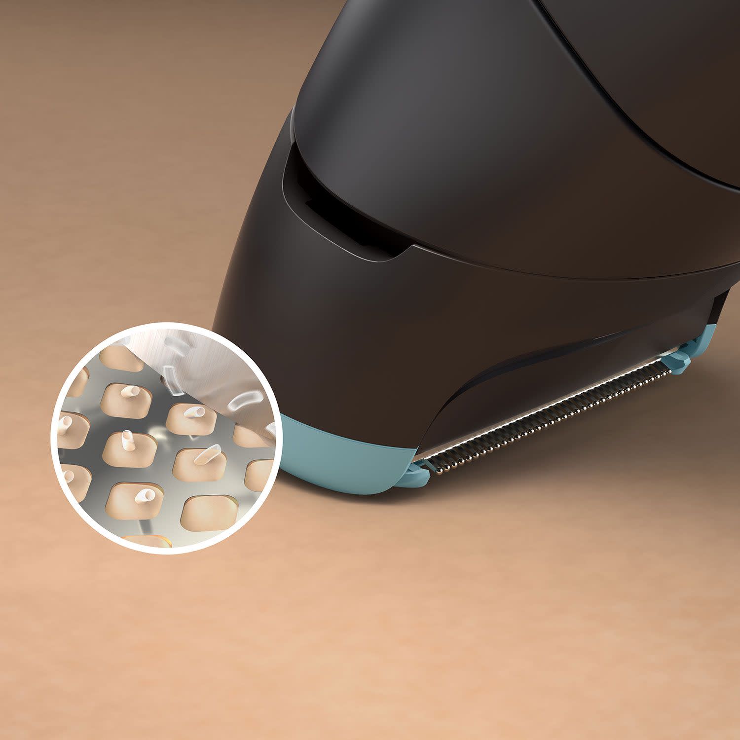 Η τεχνολογία κοπής της συσκευής σού προσφέρει βαθύ ξύρισμα ακριβείας έως 0,2 χιλιοστά, αφήνοντας το δέρμα λείο σαν βελούδο. Το πλέγμα της ξυριστικής κεφαλής σε σχήμα ρόμβου, συνεργάζεται με τις λεπίδες για να αφαιρεί αποτελεσματικά κάθε τρίχα, διατηρώντας το αποτέλεσμα ομοιόμορφο και φρέσκο για περισσότερη διάρκεια. Απόλαυσε την απαλή και αναζωογονημένη επιδερμίδα σου μετά από κάθε χρήση!