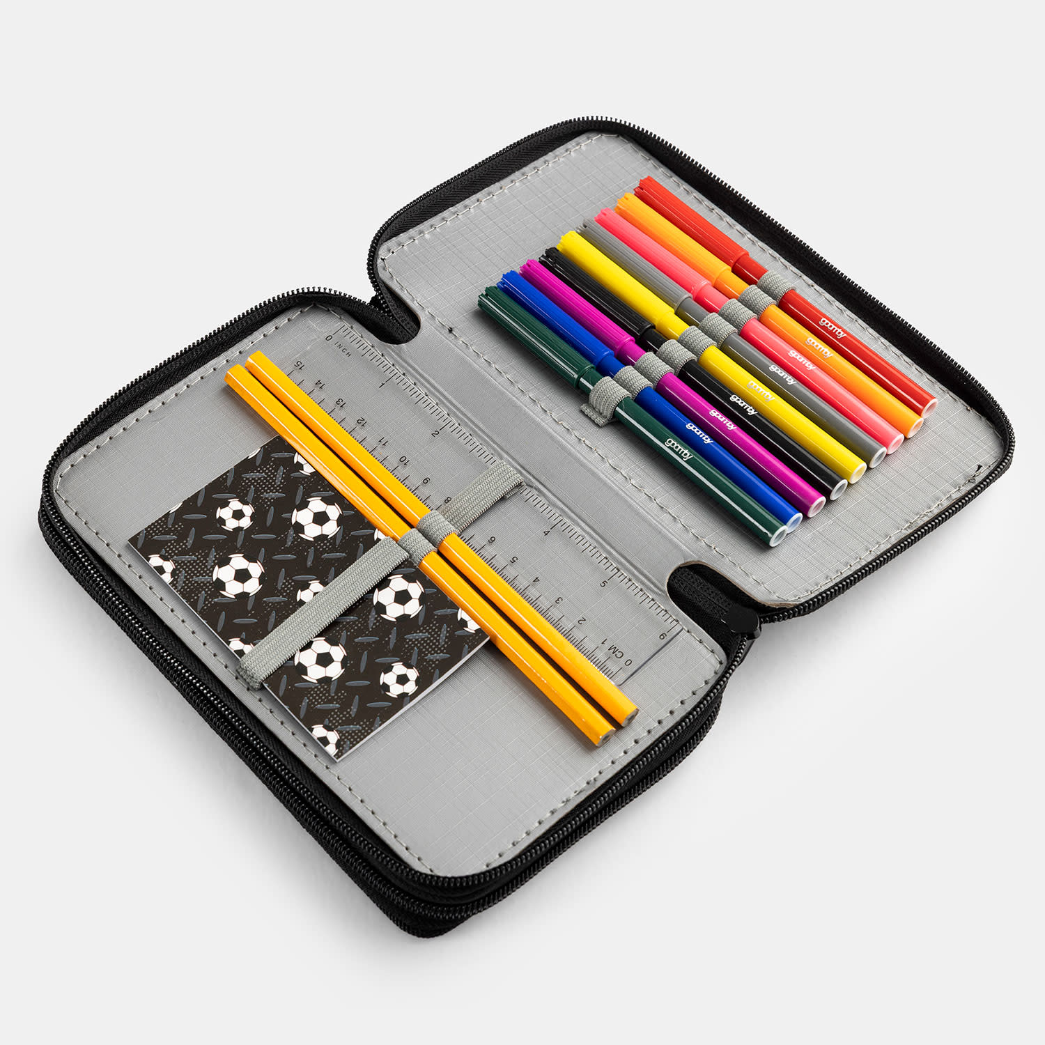Εξοπλίσου πλήρως για τη νέα σχολική χρονιά με τη γεμάτη κασετίνα «Football» της Goomby. Περιλαμβάνει όλη την απαραίτητη γραφική ύλη που θα χρειαστείς κατά τη διάρκεια μιας σχολικής μέρας και σου δίνει τη δυνατότητα να την μεταφέρεις με ασφάλεια και στιλ, χάρη στο μοναδικό της σχεδιασμό!