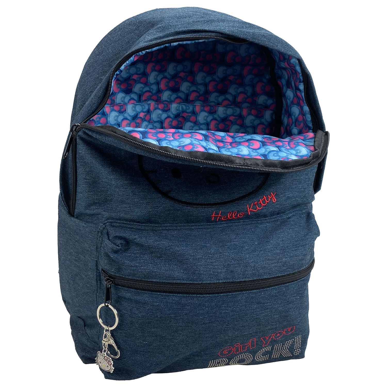 Επιστροφή στα θρανία με τη σχολική τσάντα πλάτης Hello Kitty Denim! Διαθέτει μοναδικό design, ανατομικό σχεδιασμό και ευρύχωρες θήκες, για όλα όσα χρειάζεσαι στην τάξη.