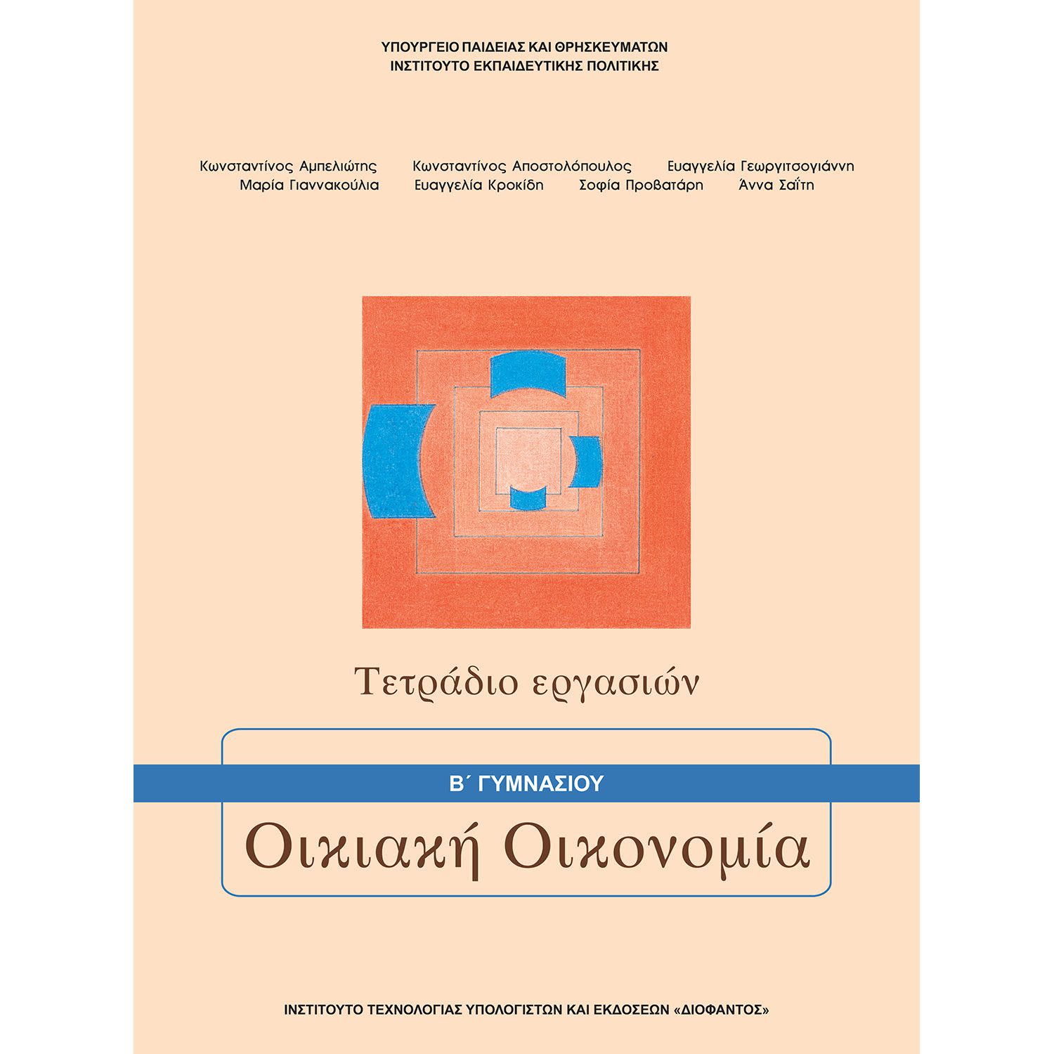 Το Τετράδιο Εργασιών για την Οικιακή Οικονομία της Β’ Γυμνασίου είναι το επίσημο τετράδιο του Υπουργείου Παιδείας και Θρησκευμάτων και απευθύνεται σε μαθητές, γονείς και καθηγητές, που χρειάζονται ένα επιπλέον αντίτυπο.