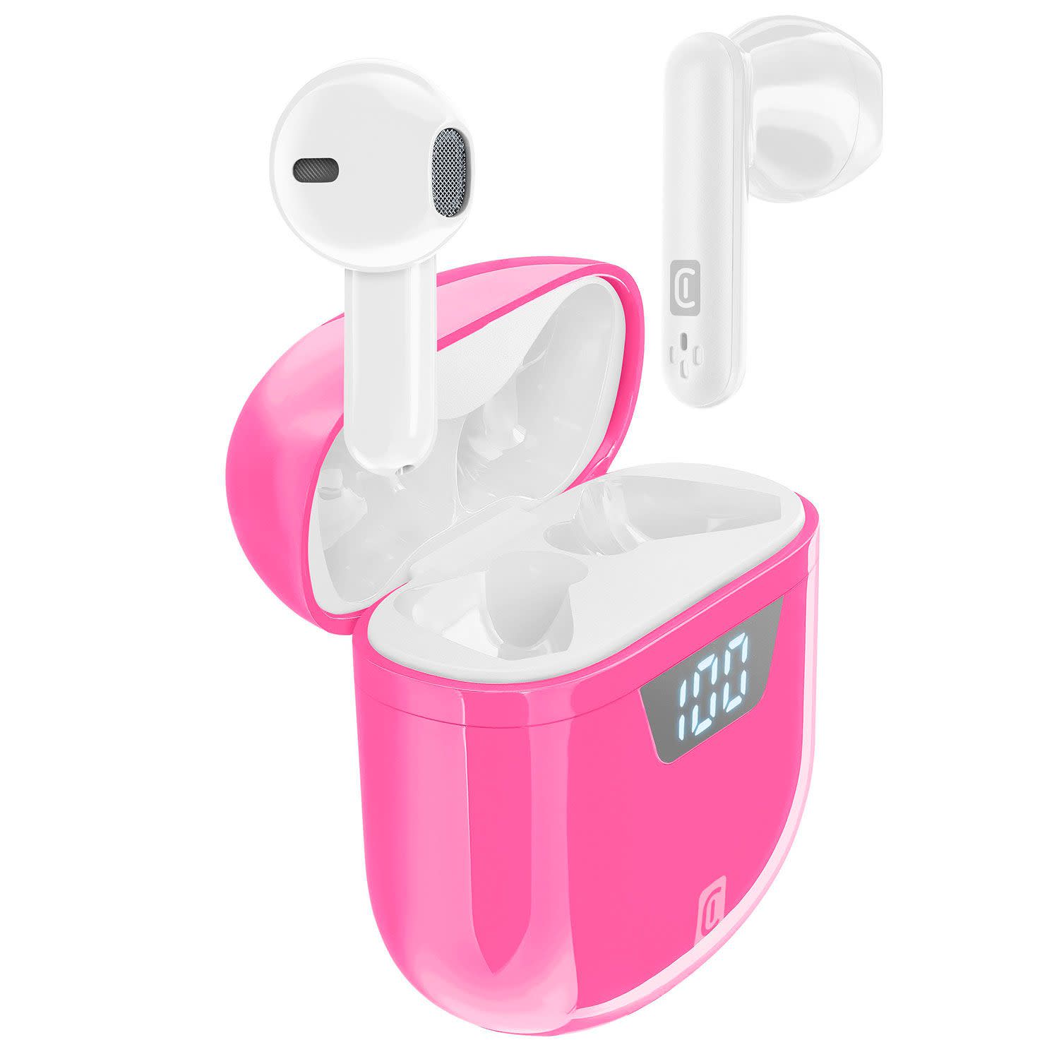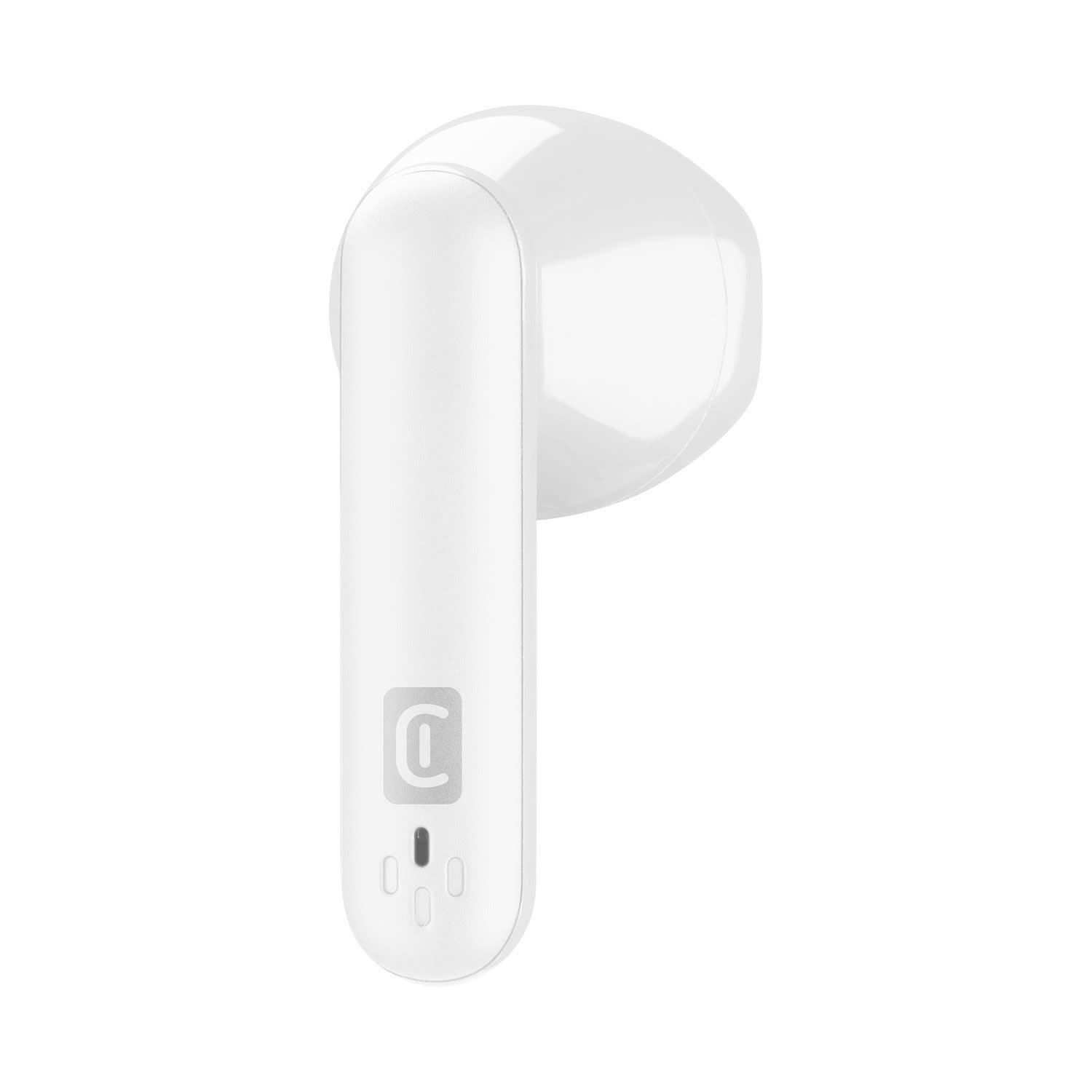 Ασύρματα (TWS) ακουστικά από την Cellularline, με συνδεσιμότητα Bluetooth® και θήκη φόρτισης με οθόνη, η οποία απεικονίζει το επίπεδο φόρτισης της μπαταρίας.