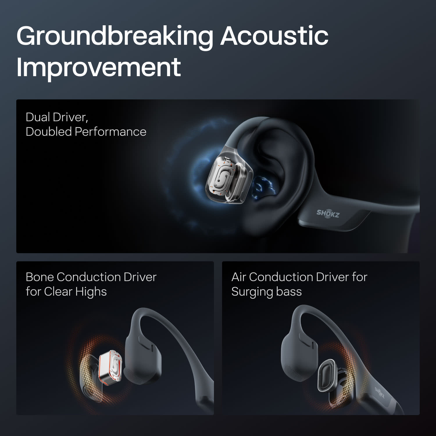 Ζήσε την επανάσταση με DualPitch™ τεχνολογία: bone conduction driver για κρυστάλλινα πρίμα και air conductiondriver για βαθιά μπάσα. Απολαμβάνεις δυναμικό και καθαρό ήχο σε κάθε τραγούδι, χωρίς ενοχλητικές δονήσεις στα αυτιά.