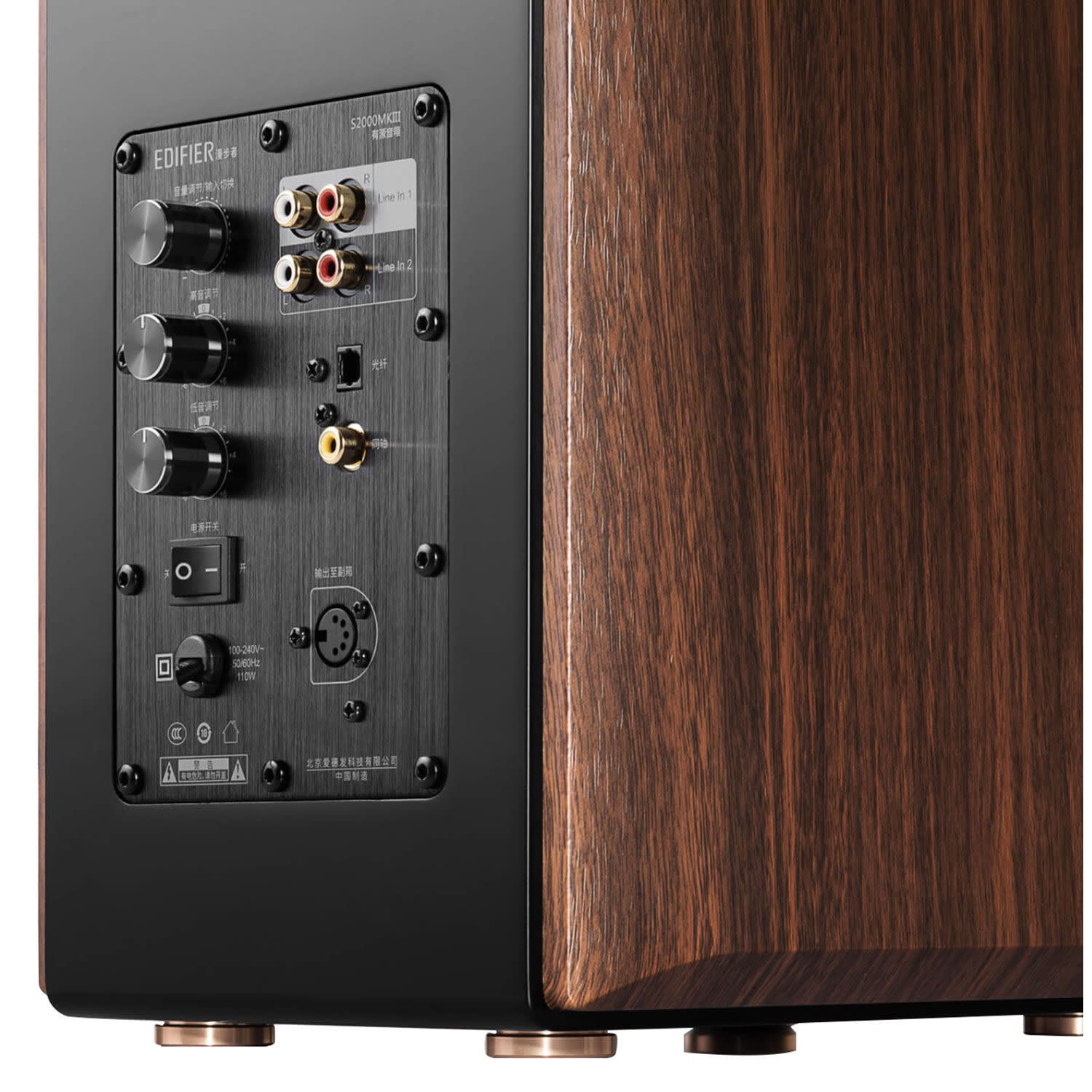 Με τα Edifier S2000MKIII τα πρίμα, τα μπάσα και η ένταση ρυθμιζόνται ανεξάρτητα. Η ρύθμιση υψηλής ακρίβειας 50 επιπέδων της κύριας έντασης και η «έξυπνη» ένταση κατά την εκκίνηση προστατεύουν τόσο την ακοή σου όσο και τα ηχεία από πιθανές βλάβες. Το περίβλημα των ηχείων είναι κατασκευασμένο από λουστραρισμένο ξύλο (καπλαμά), ενώ τα κουμπιά είναι κατασκευασμένα από μέταλλο και έχουν αίσθηση επαγγελματικής ποιότητας.