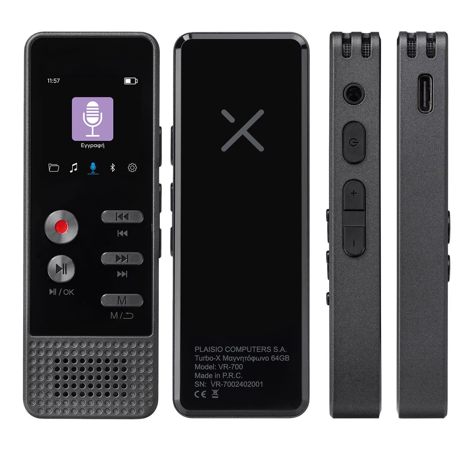 RELIABLE RECORDING, FLAWLESS TAKES: ελαφρύς και κομψός, ο στερεοφωνικός ψηφιακός καταγραφέας Turbo-X VR-700 Bluetooth® με εσωτερική μνήμη 64GB είναι ιδανικός για επαγγελματίες που θέλουν να κρατούν φωνητικές σημειώσεις on-the-go.