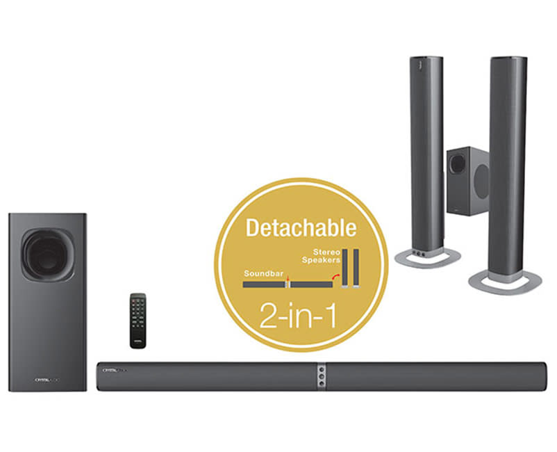 Αναβαθμίσε την εμπειρία ψυχαγωγίας σου με το Crystal Audio CASB240HD, ένα δυναμικό soundbar με 240W ισχύ, αποσπώμενη σχεδίαση και 2.1 κανάλια ήχου, που προσαρμόζεται στο σαλόνι σου και μετατρέπει κάθε προβολή, gaming session ή μουσική ακρόαση σε καθηλωτική εμπειρία.