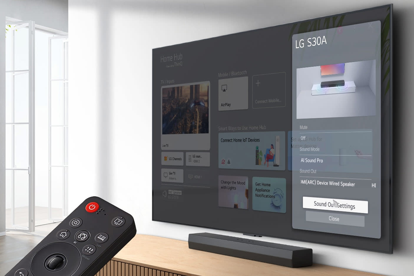 Χειρίσου όλες τις λειτουργίες του soundbar απευθείας από το τηλεχειριστήριο της LG τηλεόρασής σου, χωρίς επιπλέον χειριστήρια ή πολύπλοκες ρυθμίσεις.