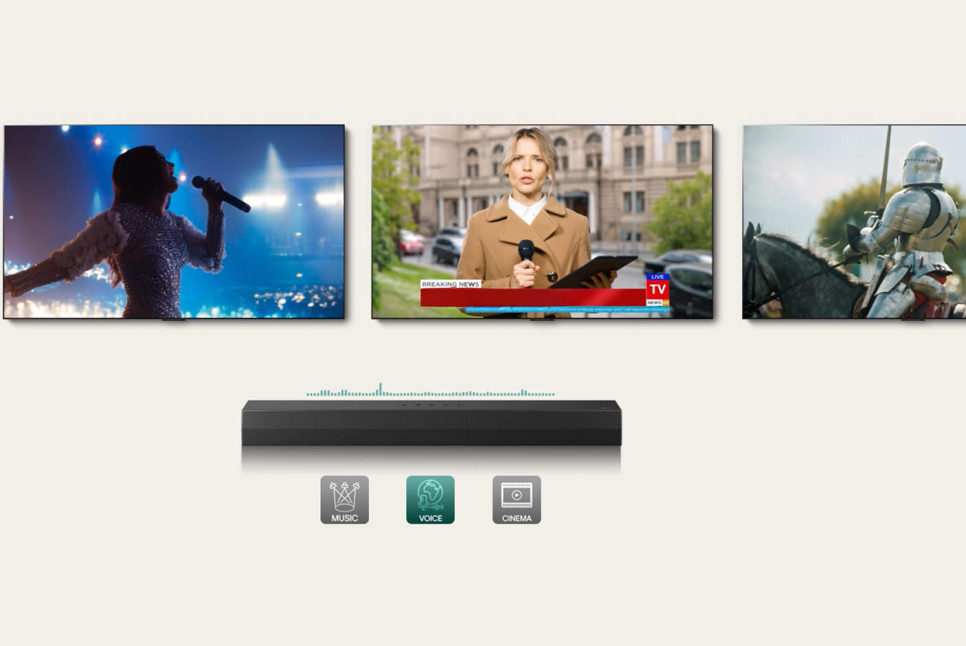 Το soundbar αναγνωρίζει το είδος του ήχου που ακούς και προσαρμόζει αυτόματα τις ρυθμίσεις για την καλύτερη ακουστική εμπειρία.