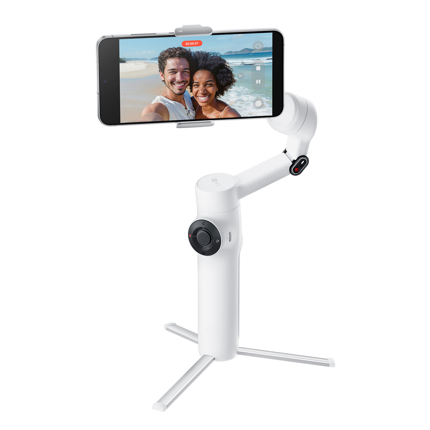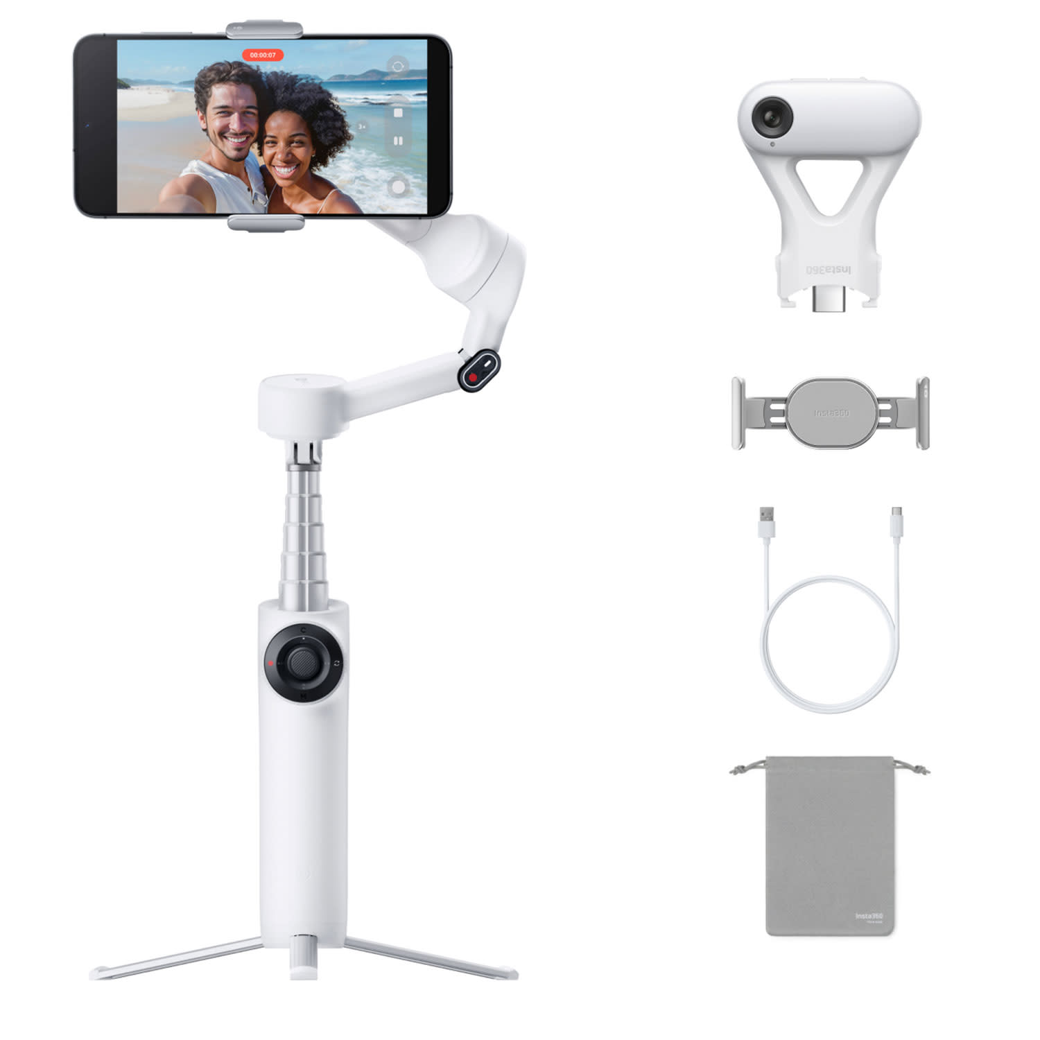 Δημιούργησε επαγγελματικής ποιότητας περιεχόμενο με δυναμικό zoom, χειρονομίες και προτάσεις λήψης σε πραγματικό χρόνο. Ο αναδιπλούμενος, ελαφρύς σχεδιασμός του το καθιστά ιδανικό για μεταφορά, ενώ το ενσωματωμένο selfie stick, τρίποδο και power bank σε κρατούν πάντα έτοιμο για δράση. Είτε κάνεις vlog, είτε livestream — δημιουργώντας το επόμενο viral βίντεο — το Insta360 Flow 2 Pro με NFC One-Tap Pairing είναι η απόλυτη λύση για κινηματογράφηση με κινητό.