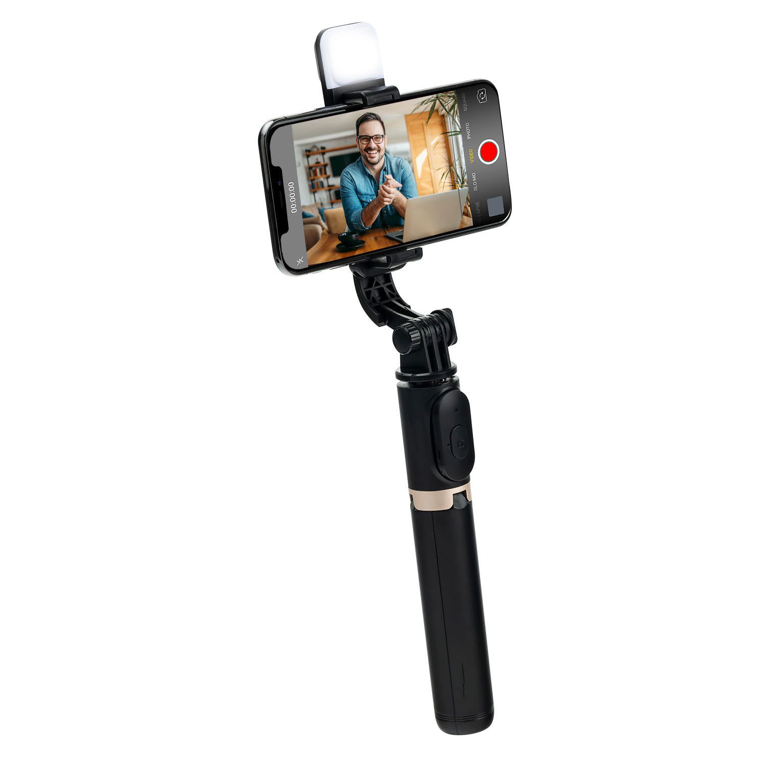 Μπορεί να γίνει έως και 90 μοιρών κάθετη στροφή της κεφαλής για χρήση της κάμερας του κινητού σου σε οριζόντια ή κάθετη θέση. Την ίδια στιγμή λειτουργεί και ως Selfie Monopod!
