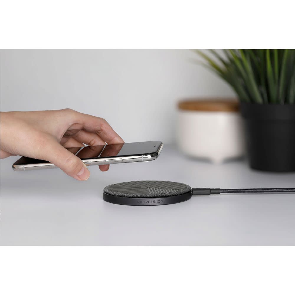 Αν θες το «μέσο» για να φορτίζεις έξυπνα, γρήγορα και... στιλάτα τις συσκευές σου στο γραφείο και το σπίτι, κάνε δικό σου τον ασύρματο φορτιστή της Native Union. Τροφοδοτεί AirPods έως 5W, iPhone έως 7.5W και άλλες συσκευές συμβατές με Qi έως 10W. Ο φορτιστής είναι κατασκευασμένος από βαρύ αλουμίνιο και είναι επενδυμένος με ύφασμα. Ακόμα, η βάση είναι αντιολισθητική και κρατάει τη συσκευή που φορτίζεις σταθερά στη θέση της. Ενώ, «γεμίζει» μπαταρία συσκευές που φορούν θήκη έως και 0.3cm. Ανιχνεύει ξένα αντικείμενα και έχει θερμική προστασία, για ασφαλή φόρτιση.