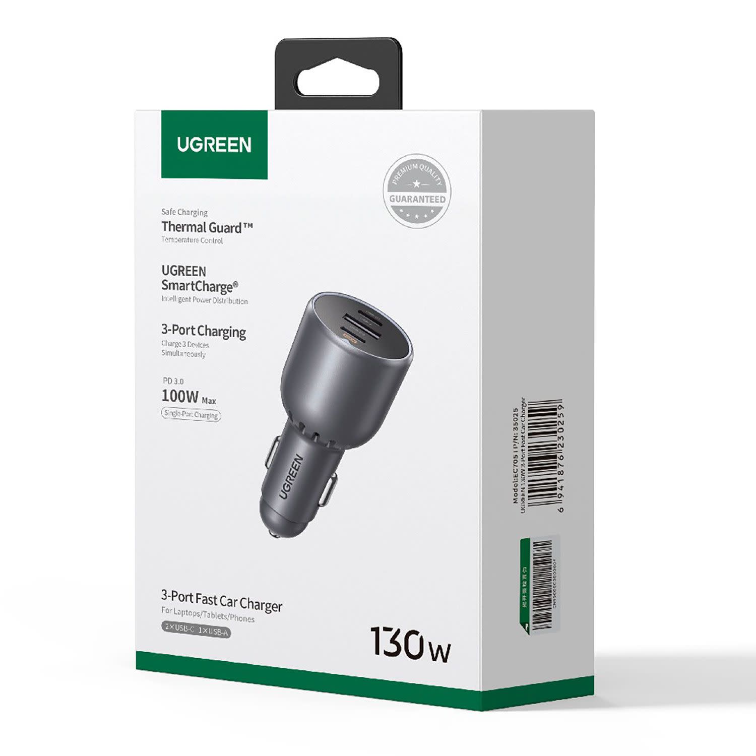 Συνδυάζοντας ταχύτητα, υψηλή απόδοση και ασφάλεια σε ένα συμπαγές και πρακτικό «πακέτο», ο UGREEN 130W 3-Port PD 100W είναι ο ιδανικός φορτιστής για το αυτοκίνητό σου.