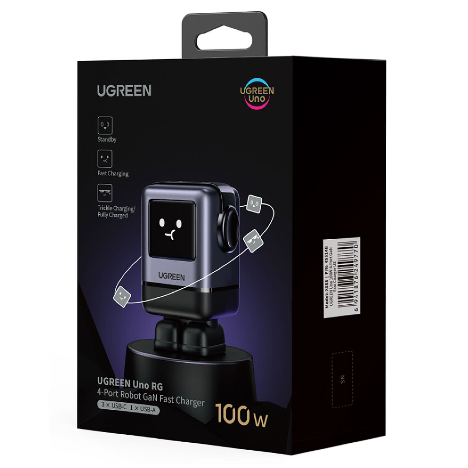 ACTIVATE YOUR CURIOSITY: συνδυάζoντας τη λειτουργικότητα με το παιχνίδι, ο UGREEN Uno Charger 100W ενσωματώνει τρεις θύρες USB-C και μία θύρα USB-A.