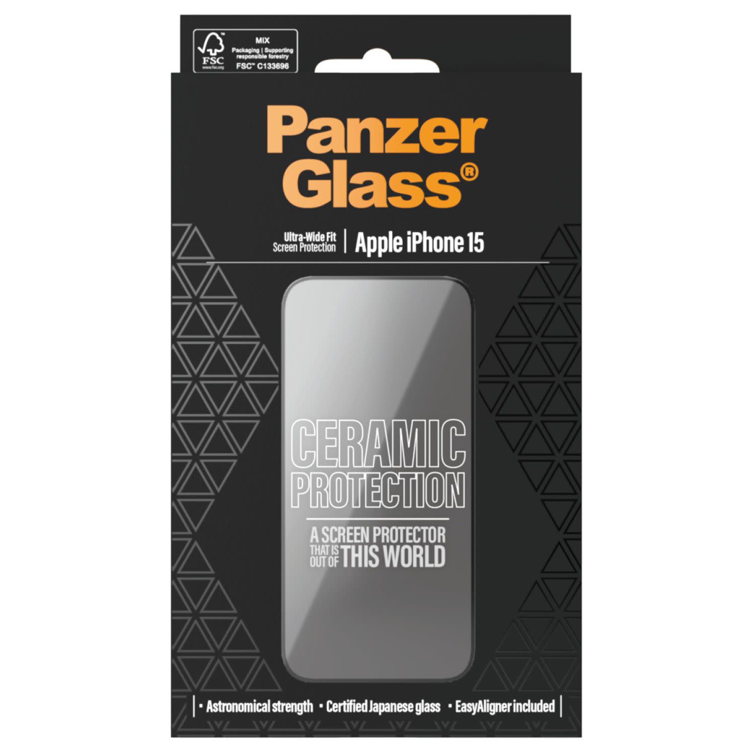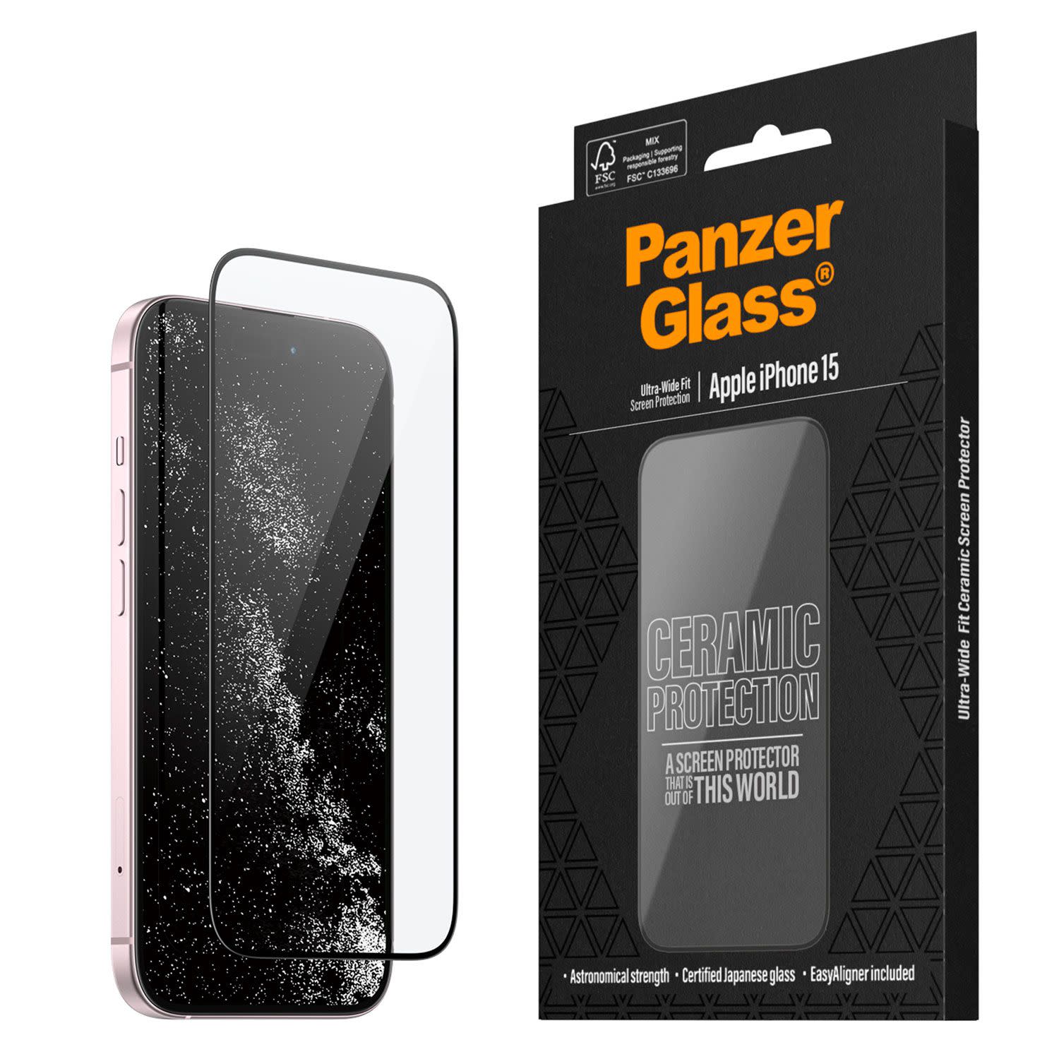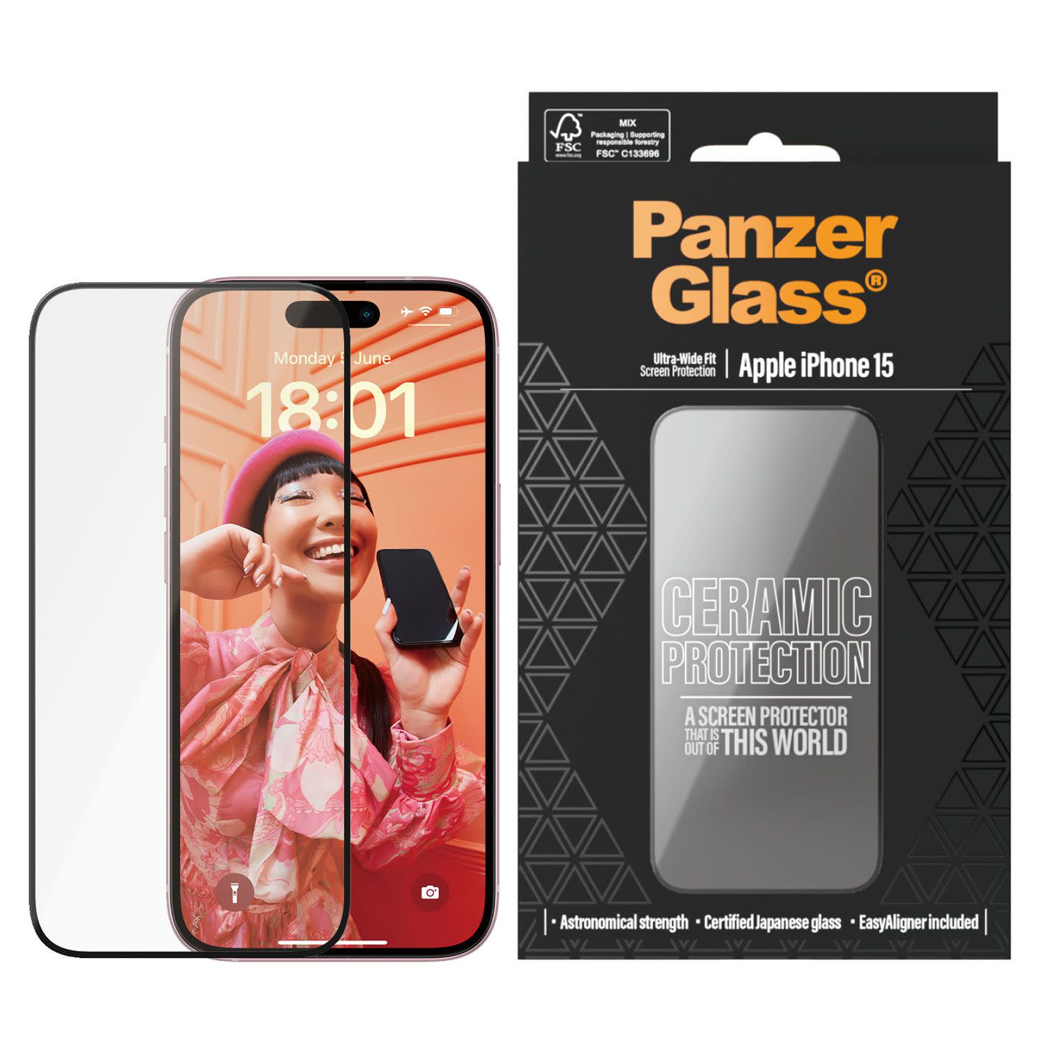Τζαμάκι οθόνης PanzerGlass® για το iPhone15. Εγγυάται απόλυτη προστασία, καθώς είναι 5 φορές πιο ανθεκτικό από άλλα και εφαρμόζει ακριβώς εκεί που πρέπει, ώστε να τοποθετήσεις με ασφάλεια και θήκη!