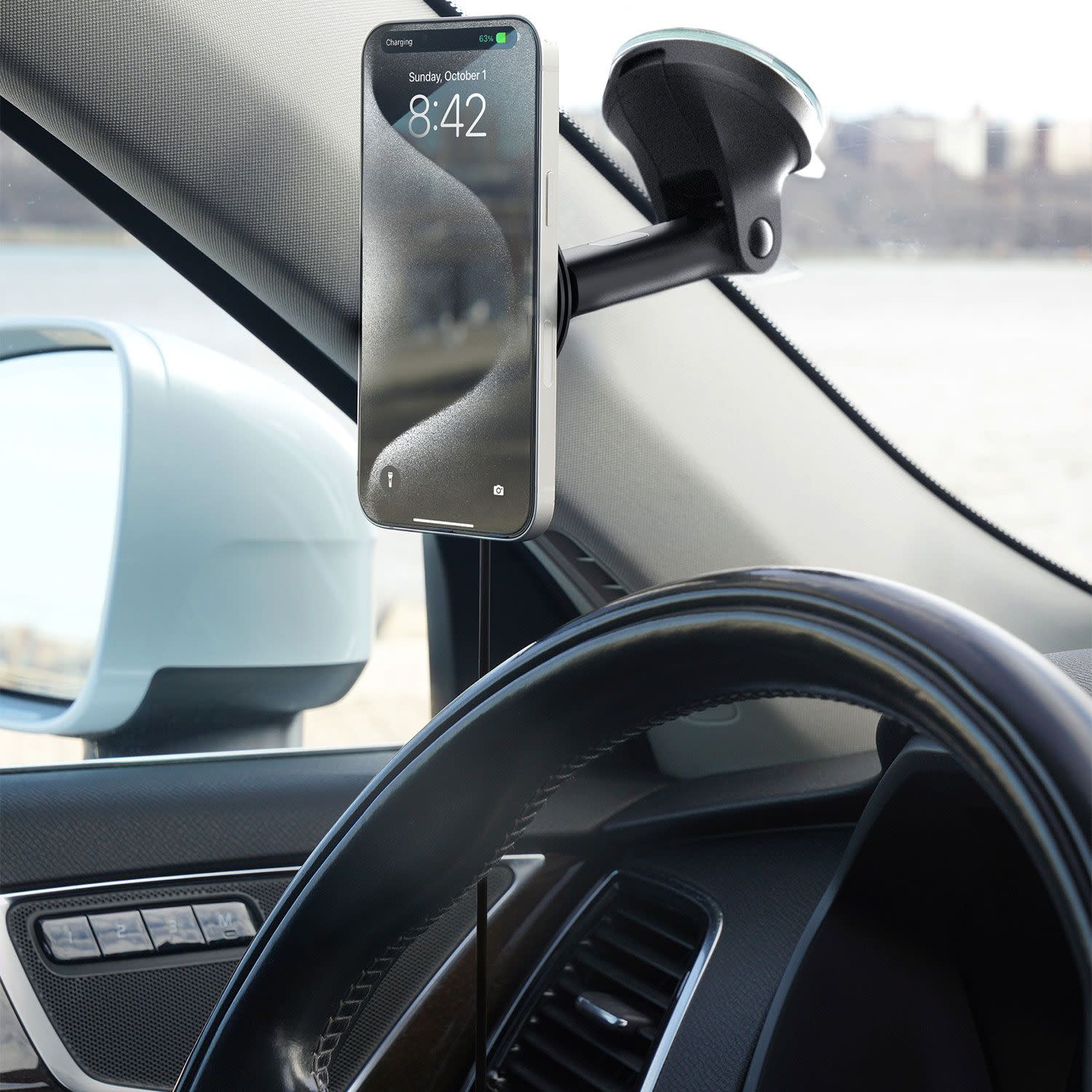 Ασύρματη φόρτιση 15W για συσκευές Qi2 και MagSafe iPhones, με ισχυρή βάση αναρρόφησης και τηλεσκοπικό βραχίονα για ιδανική ευθυγράμμιση και σταθερότητα σε όλες τις διαδρομές.
