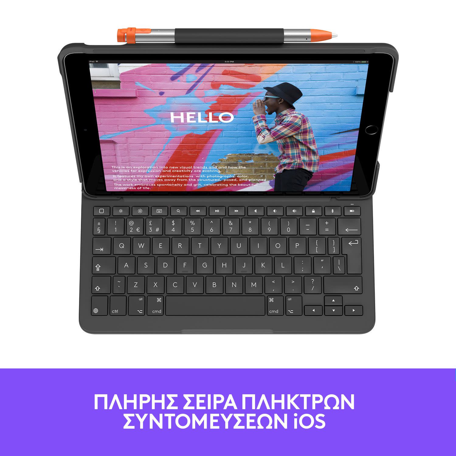 Πληκτρολόγιο κανονικού μεγέθους. Ελαφριά θήκη. Μεταφέρεται παντού. Γνώρισε το εκπληκτικά λεπτό Slim Folio για iPad από την Logitech.
