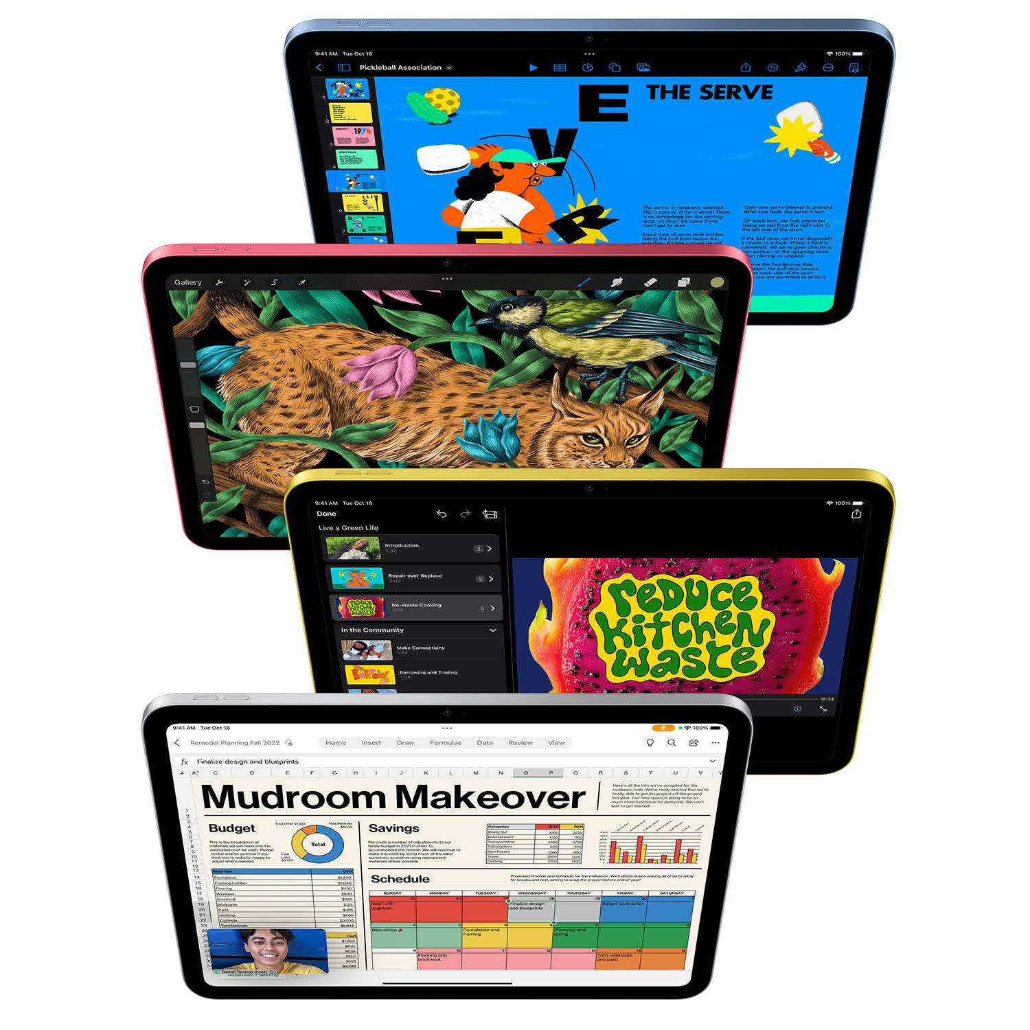 Πολύχρωμο, επανασχεδιασμένο και πιο ευέλικτο από ποτέ. Με οθόνη, απ’ άκρη σ’ άκρη* Liquid Retina 10,9 ιντσών και τέσσερα υπέροχα χρώματα. Το iPad προσφέρει έναν μοναδικό τρόπο για να δημιουργείτε, να παραμένετε συνδεδεμένοι και να είστε αποτελεσματικοί σε ό,τι κάνετε.