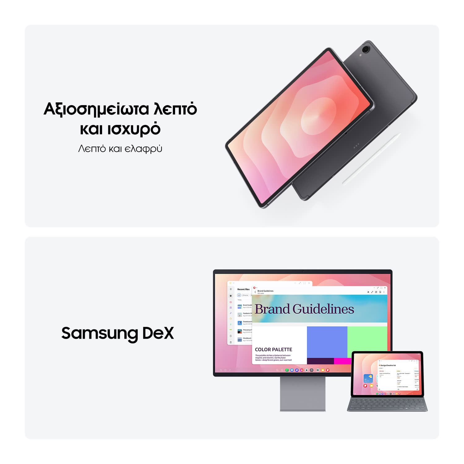 Αναβάθμισε την εμπειρία σου με Book Cover, Keyboard Slim ή Frame Case. Απόλυτη προστασία, ευελιξία στη χρήση και παραγωγικότητα επιπέδου PC — όλα πωλούνται ξεχωριστά.