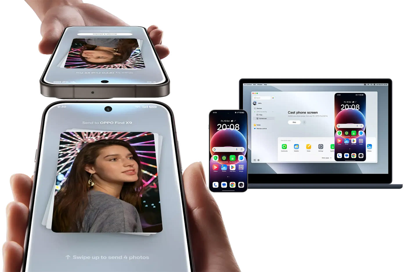 Με το Touch to Share μπορείς να μεταφέρεις γρήγορα φωτογραφίες και αρχεία μεταξύ OPPO συσκευών και συσκευών της Apple, αρκεί να κατεβάσετε το OPPO Connect στο iPhone. Κάνε screen mirroring στο PC και το Mac σου και χειρίσου τις εφαρμογές απ’ ευθείας από τον υπολογιστή. Με το OPPO Connect για PC και Mac, μπορείς να χρησιμοποιήσεις συντομεύσεις πληκτρολογίου για ακόμα περισσότερη ευκολία.