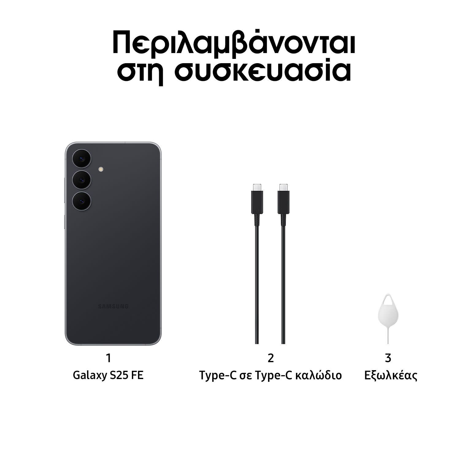Διαθέσιμο σε τέσσερα εντυπωσιακά χρώματα (Jetblack, Icyblue, Navy και White), με μεγάλη μπαταρία 4.900 mAh, αισθητήρα δακτυλικών αποτυπωμάτων, αναγνώριση προσώπου, αδιάβροχη κατασκευή (IP68) και εκπληκτικές δυνατότητες AI, το Samsung Galaxy S25 FE με One UI 8.0 προσφέρει μία νέα αίσθηση πολυτέλειας που έρχεται από το μέλλον.