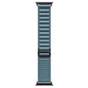 Το στιβαρό λουράκι Alpine Loop της Apple είναι κατασκευασμένο από δύο υφασμάτινες στρώσεις, πλεγμένων μεταξύ τους σε ένα συνεχές κομμάτι, χωρίς ραφές. Νήματα υψηλής αντοχής ενισχύουν τις άνω θηλιές, ενώ το ανθεκτικό στη διάβρωση γάντζο G από τιτάνιο γλιστράει εύκολα στις θηλιές, για ασφαλή εφαρμογή.