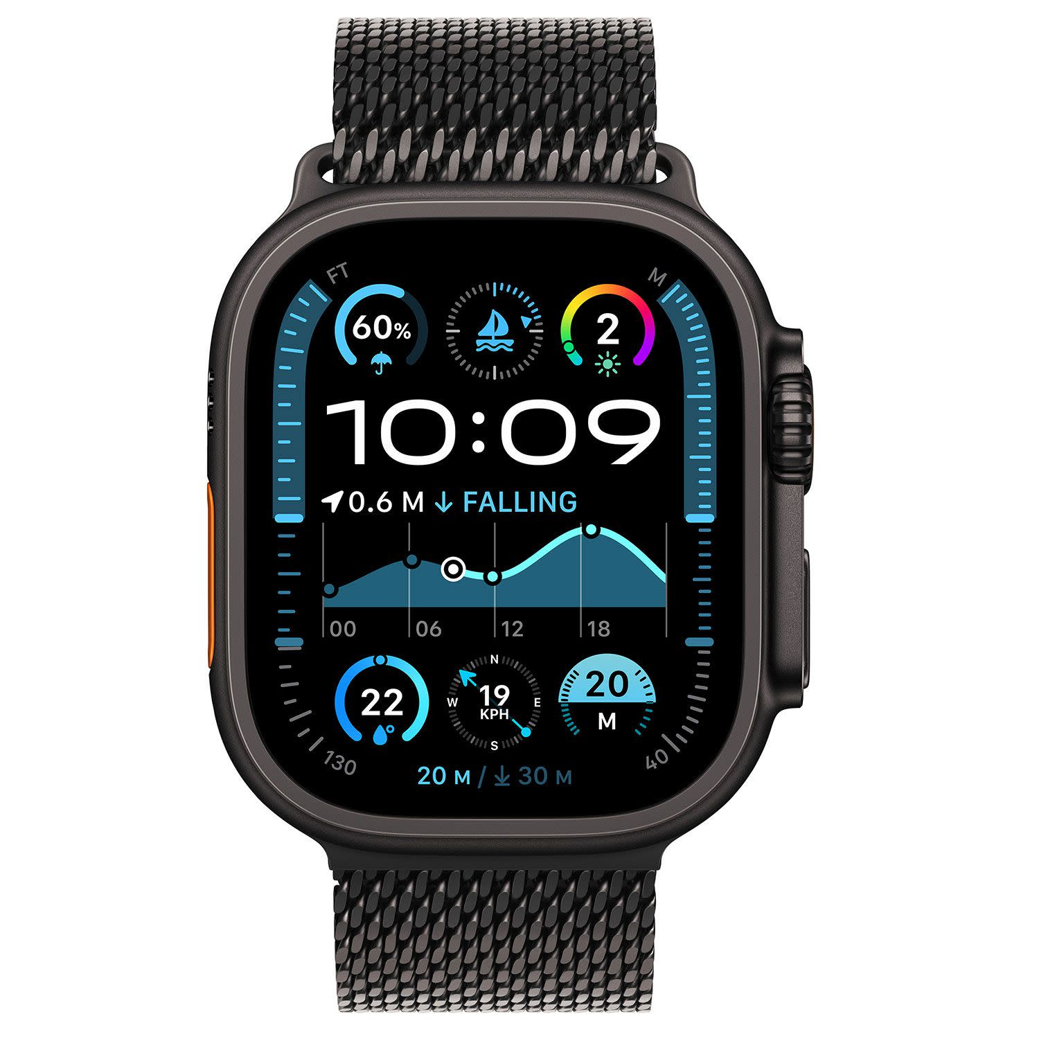 Apple Watch Ultra 2 49mm Black Titanium Case with Black Titanium Milanese Loop S