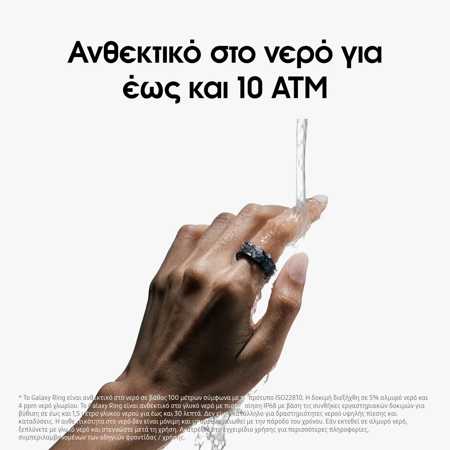 Και με διάρκεια ζωής μπαταρίας που φτάνει έως και τις 7 ημέρες, το Galaxy Ring εξασφαλίζει συνεχή παρακολούθηση χωρίς διακοπές. Διαθέσιμο σε 11 μεγέθη (με δυνατότητα χρήσης κιτ υπολογισμού μεγέθους για τέλεια εφαρμογή), το Galaxy Ring είναι το πλέον… διακριτικό και τεχνολογικά προηγμένο wearable για όσους επιθυμούν να συνδυάσουν το στιλ με την AI-powered τεχνολογία παρακολούθησης της υγείας και της ευεξίας στην καθημερινότητα τους.