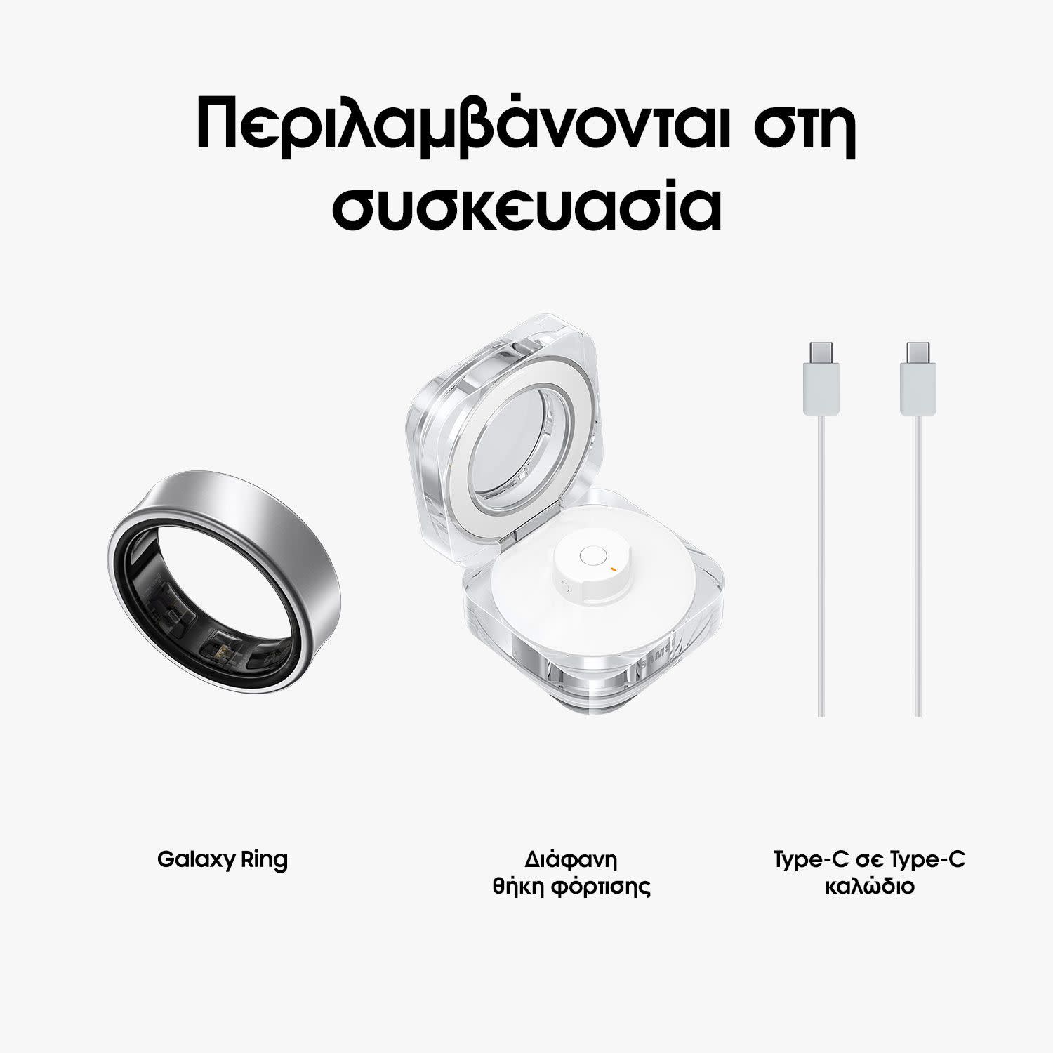 Και με διάρκεια ζωής μπαταρίας που φτάνει έως και τις 7 ημέρες, το Galaxy Ring εξασφαλίζει συνεχή παρακολούθηση χωρίς διακοπές. Διαθέσιμο σε 11 μεγέθη (με δυνατότητα χρήσης κιτ υπολογισμού μεγέθους για τέλεια εφαρμογή), το Galaxy Ring είναι το πλέον… διακριτικό και τεχνολογικά προηγμένο wearable για όσους επιθυμούν να συνδυάσουν το στιλ με την AI-powered τεχνολογία παρακολούθησης της υγείας και της ευεξίας στην καθημερινότητα τους.