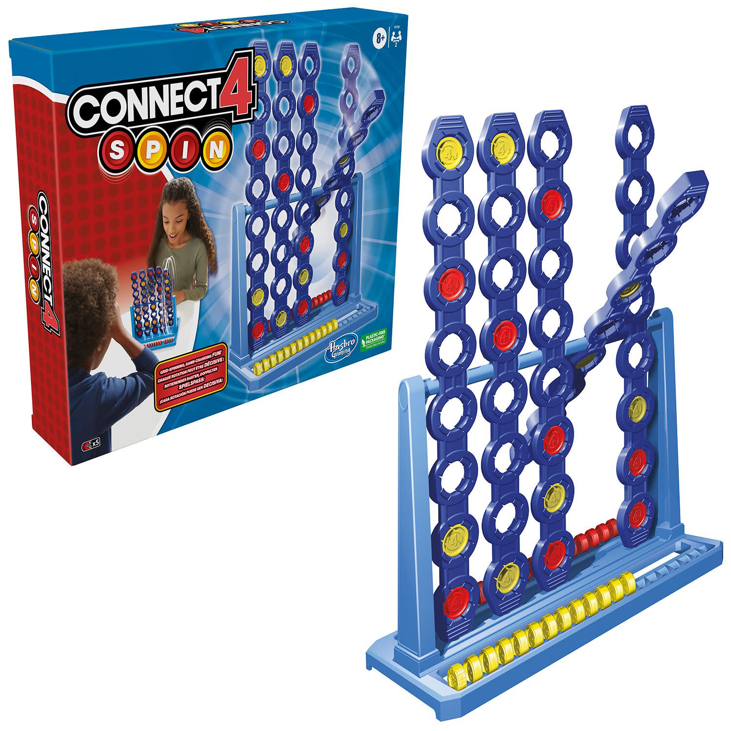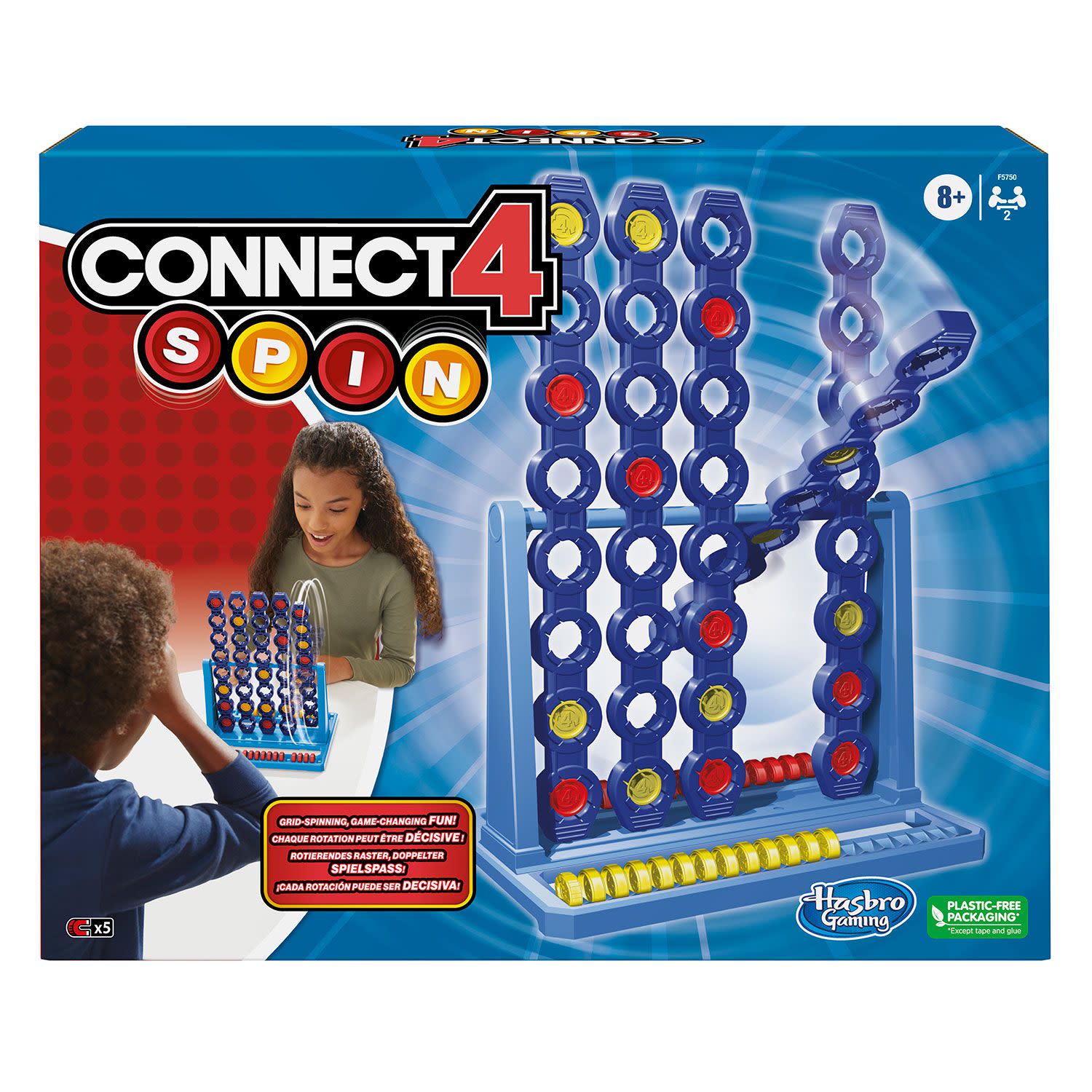 Το Επιτραπέζιο Connect 4 Spin F5750 της Hasbro είναι ένα ενδιαφέρον παιχνίδι στρατηγικής με ένα περιστρεφόμενο πλέγμα, το οποίο έχει να κάνει με την ισορροπία! Οι παίκτες επιλέγουν μια θέση για να τοποθετήσουν τη μάρκα παιχνιδιού τους στο πλέγμα και στη συνέχεια πρέπει να κάνουν τη στήλη να περιστραφεί μέχρι να σταματήσει μόνη της.