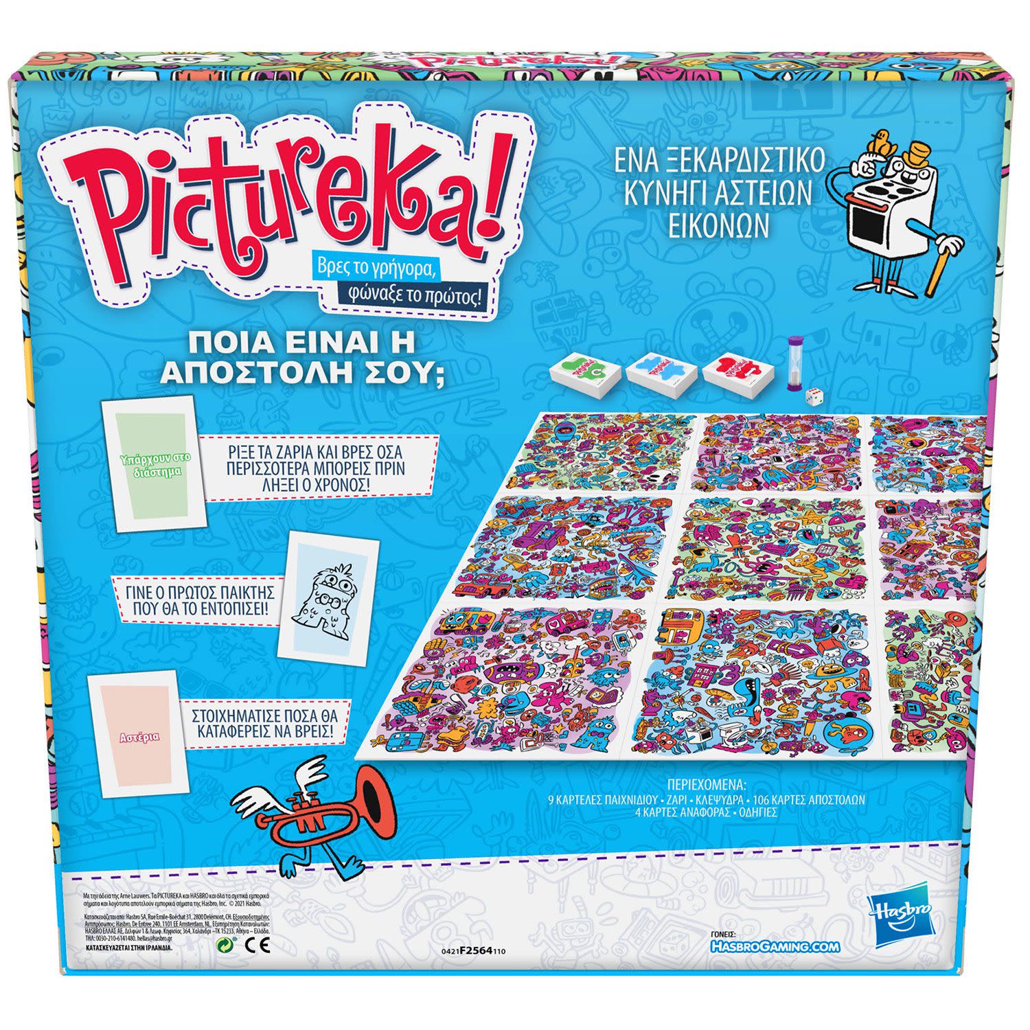 Οργάνωσε την πιο διασκεδαστική βραδιά στο σπίτι με το κλασικό αλλά ανανεωμένο παιχνίδι με τις εικόνες! Βρες γρήγορα την εικόνα που αντιστοιχεί στην αποστολή σου και φώναξε πρώτος «Pictureka»! Οι κάρτες αποστολής χωρίζονται σε μπλε, κόκκινες και πράσινες - κάθε χρώμα αντιστοιχεί σε διαφορετική κατηγορία παιχνιδιού. Σε κάθε γύρο η αγωνία κορυφώνεται καθώς συνειδητοποιείς πως ο μεγαλύτερός σου αντίπαλος είναι ο χρόνος…
