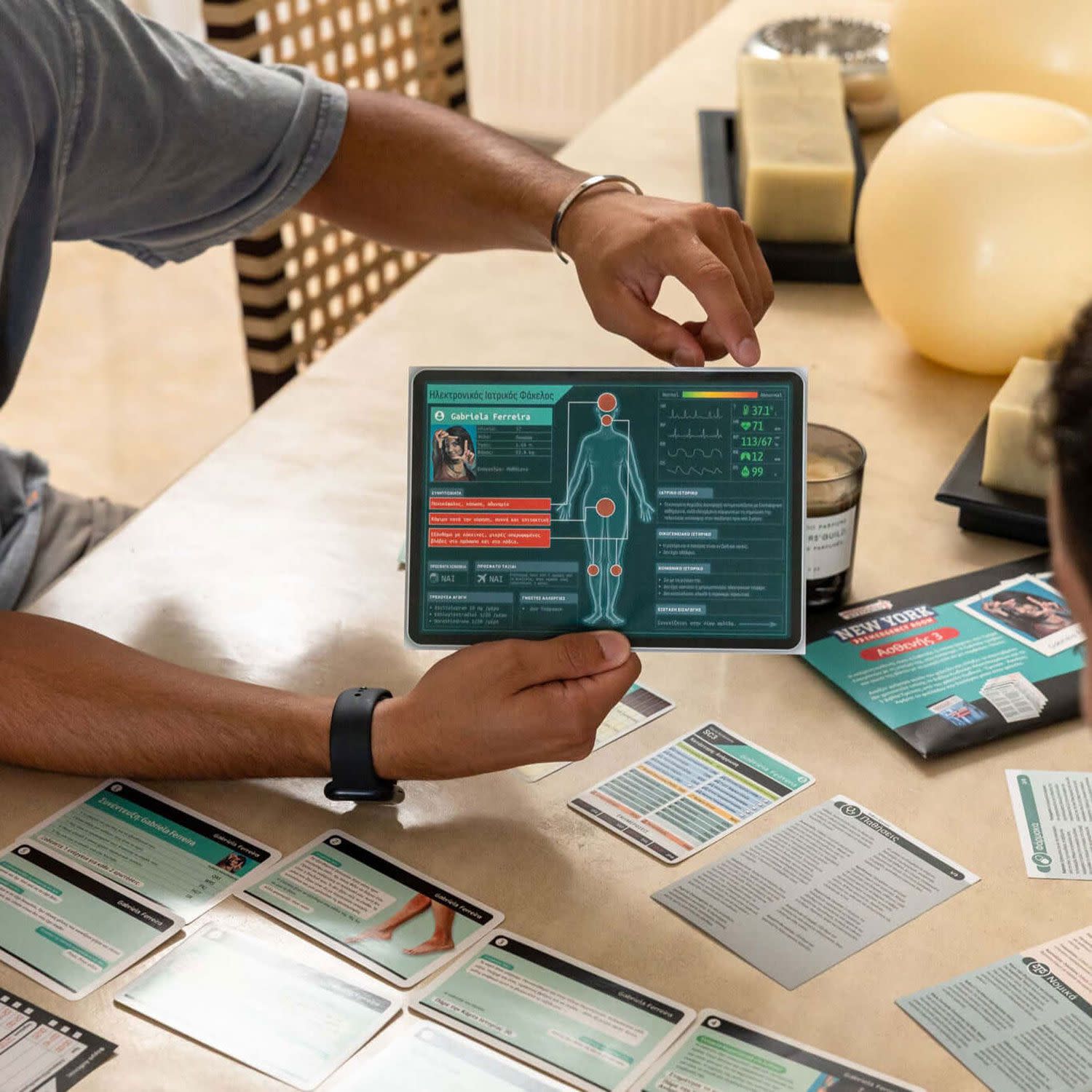 Θα επιβιώσει ο ασθενής σου την νύχτα; Δούλεψε ομαδικά ή μόνος, ξετύλιξε τις μυστηριώδεις ιατρικές υποθέσεις και βοήθησε τους ασθενείς σου να επιβιώσουν...Προσοχή! Ο χρόνος μετράει! Κάθε κουτί περιλαμβάνει τέσσερις διαφορετικές υποθέσεις ασθενών, χωρίς να απαιτούνται ιατρικές γνώσεις.