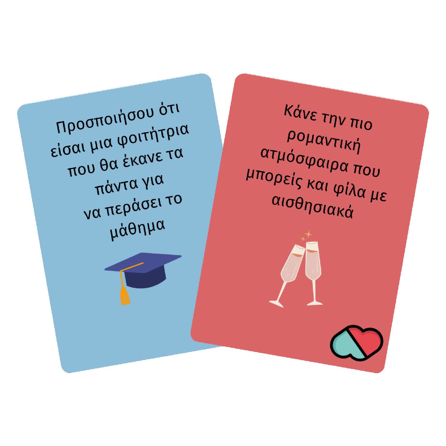 Το παιχνίδι είναι σχεδιασμένο για ζευγάρια με σκοπό να διασκεδάσουν και να εμπλουτίσουν την ερωτική τους ζωή. Στη συσκευασία υπάρχουν δύο τράπουλες, μια για εκείνον και μια για εκείνη. Υπάρχουν 2 ειδών κάρτες, η Προσταγή και το Δίλλημα. Ο καθένας διαβάζει τι λέει η κάρτα στον άλλον εναλλάξ, η προσταγή είναι μια πρόταση για το τι πρέπει να κάνει ο άλλος, ενώ το δίλλημα δίνει την επιλογή στον παίχτη να διαλέξει την συνέχεια. Τις κάρτες «ΓΙΑ ΕΚΕΙΝΟΝ» διαβάζει ο άντρας και η τις κάρτες «ΓΙΑ ΕΚΕΙΝΗ» διαβάζει η γυναίκα. Απλός τρόπος παιχνιδιού: Ο κάθε παίκτης διαβάζει τι λέει η κάρτα στον άλλον εναλλάξ και πράττει σύμφωνα με αυτές. Σύνθετος τρόπος παιχνιδιού: Ο κάθε παίκτης αφού ανακατέψει την τράπουλα τραβάει 2 κάρτες. (2 κάρτες «ΓΙΑ ΕΚΕΙΝΗ» η γυναίκα και 2 κάρτες «ΓΙΑ ΕΚΕΙΝΟΝ» ο άντρας).