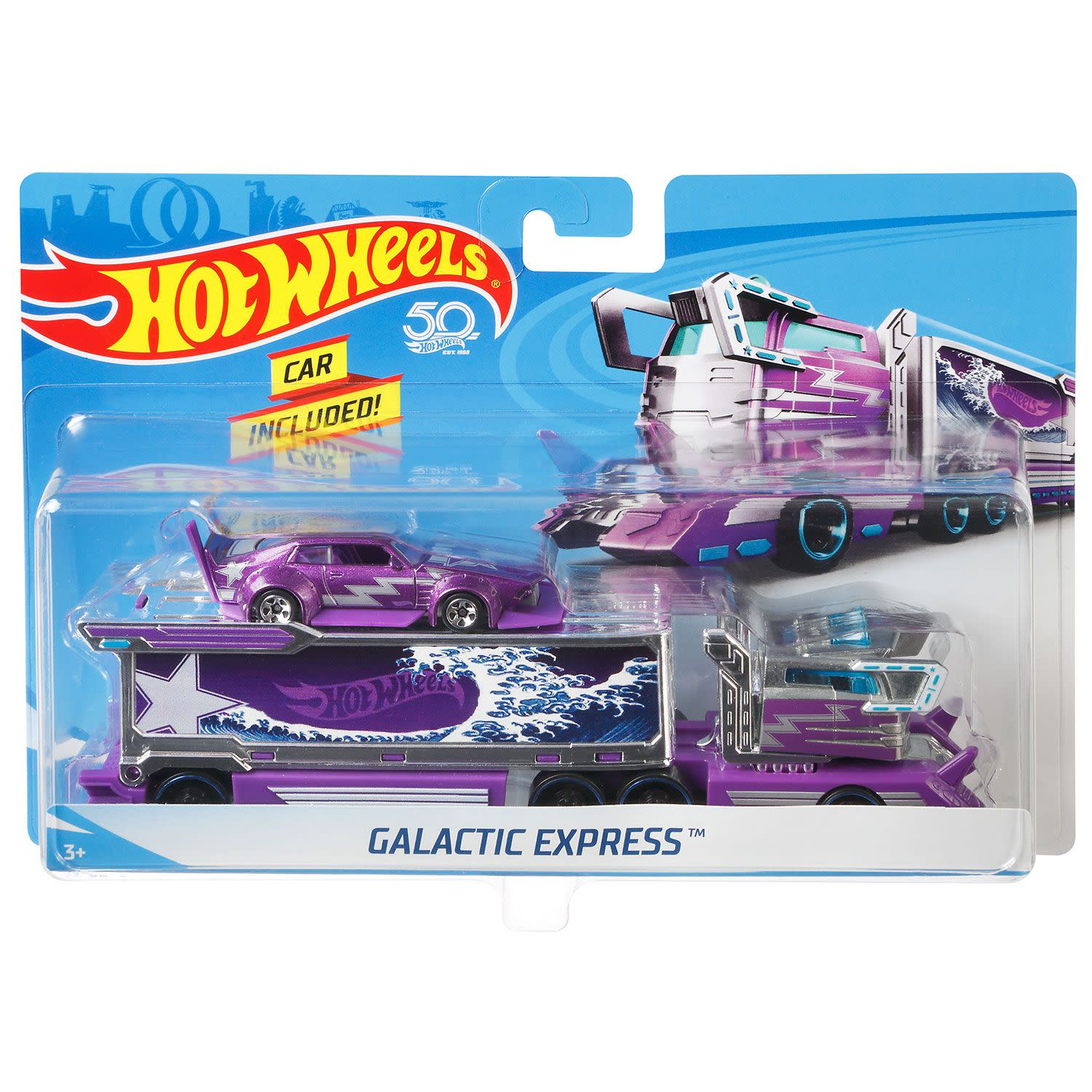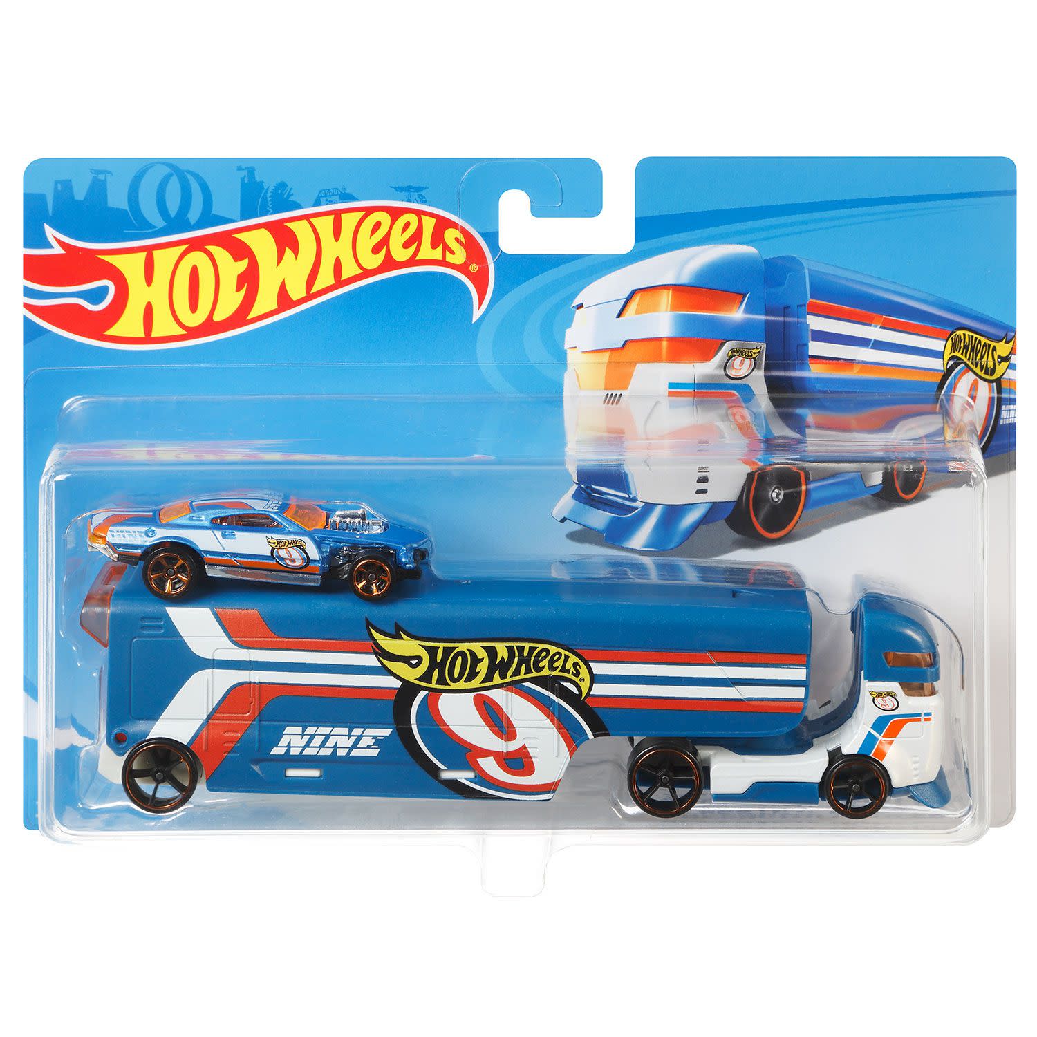 Eίσαι έτοιμος για ν’ αλλάξεις τους κανόνες στην άσφαλτο; Χάρη στο απίθανο σετ με φορτηγό Hot Wheels® και αυτοκίνητο μπορείς να ζήσεις στην πίστα μεγάλες αγωνιστικές συγκινήσεις! Κάθε φορτηγό περιλαμβάνει ένα σπορ αυτοκίνητο με αγωνιστικές λεπτομέρειες για σούπερ δράση!