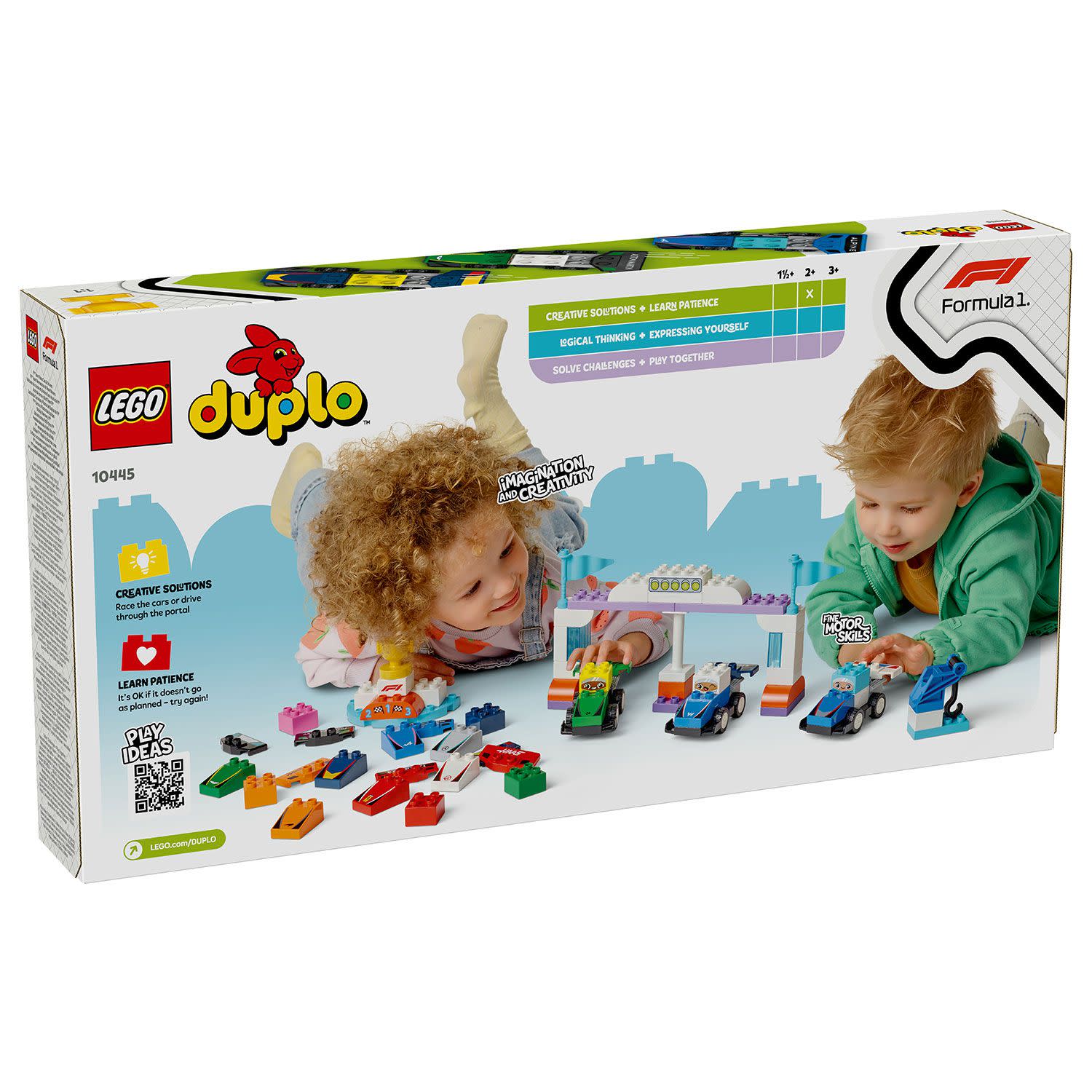 Γνώρισε στο νήπιό σου τον κόσμο της Formula 1® με αυτό το γεμάτο χαρακτηριστικά σετ κατασκευής LEGO® DUPLO®. Ετοιμάσου για συναρπαστικό παιχνίδι, καθώς εσύ και το νήπιο κατασκευάζετε και αναπαριστάτε συγκλονιστικούς αγώνες. Με γνωστές ομάδες F1®, τα νήπια εξατομικεύουν τα αυτοκίνητα και μετά επιλέγουν τον οδηγό που θα περάσει πρώτος τη γραμμή τερματισμού και θα σηκώσει το τρόπαιο!