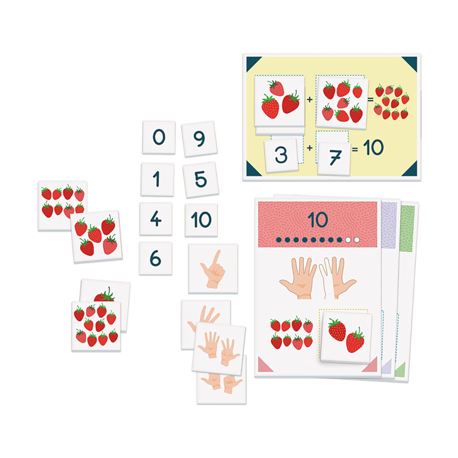 Στην αρχή καλείται να συνδυάσει τις κάρτες χεριών, τις κάρτες ποσοτήτων και τα αριθμητικά σύμβολα, για να μάθει πώς να μετράει μέχρι το 10. Στη συνέχεια, με τις κάρτες ζευγαριών του 10 ψάχνει να βρει όλους τους συνδυασμούς ποσοτήτων που έχουν άθροισμα το 10.
