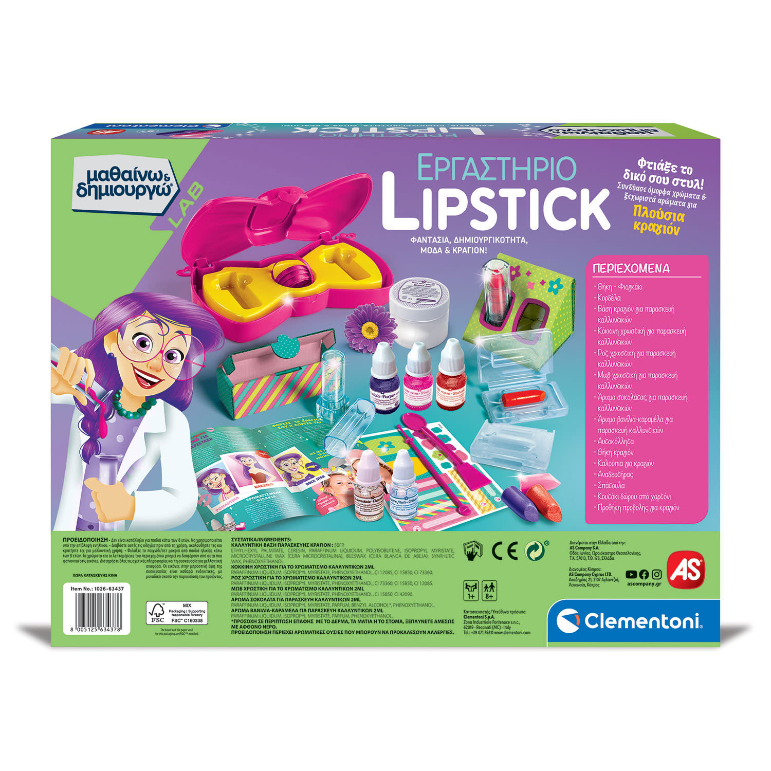 Ένα πλούσιο επιστημονικό σετ για να δημιουργήσεις απίστευτα κραγιόν και να ανακαλύψεις ότι η επιστήμη έχει χίλια χρώματα! Περιέχει όλα όσα χρειάζεσαι και τον επιστημονικό εξοπλισμό, για να φτιάξεις κραγιόν με εύκολο και διασκεδαστικό τρόπο!