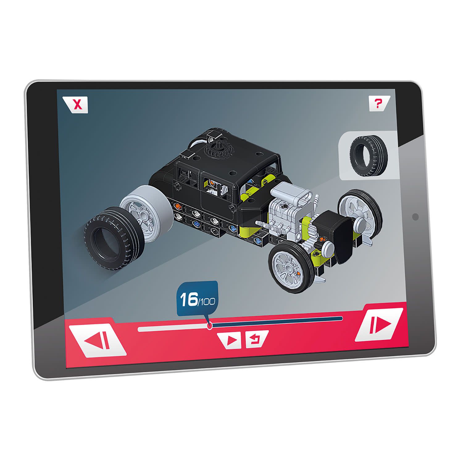 Με αυτό το επιστημονικό εργαστήριο μπορείς να πειραματιστείς με τα συστήματα μετάδοσης της κίνησης, κατασκευάζοντας 2 μοντέλα. Θα βρεις 1 μοντέλο προς συναρμολόγηση σύμφωνα με το εγχειρίδιο οδηγιών ή το app και 1 μοντέλο προς συναρμολόγηση σύμφωνα με το app. Πειραματίσου με πάνω από 130 στοιχεία για τη κατασκευή ενός hotrod με λειτουργία pull back. Δοκίμασε το app χρησιμοποιώντας κινούμενες εικόνες και μοντέλα 3D για συναρμολόγηση βήμα προς βήμα.