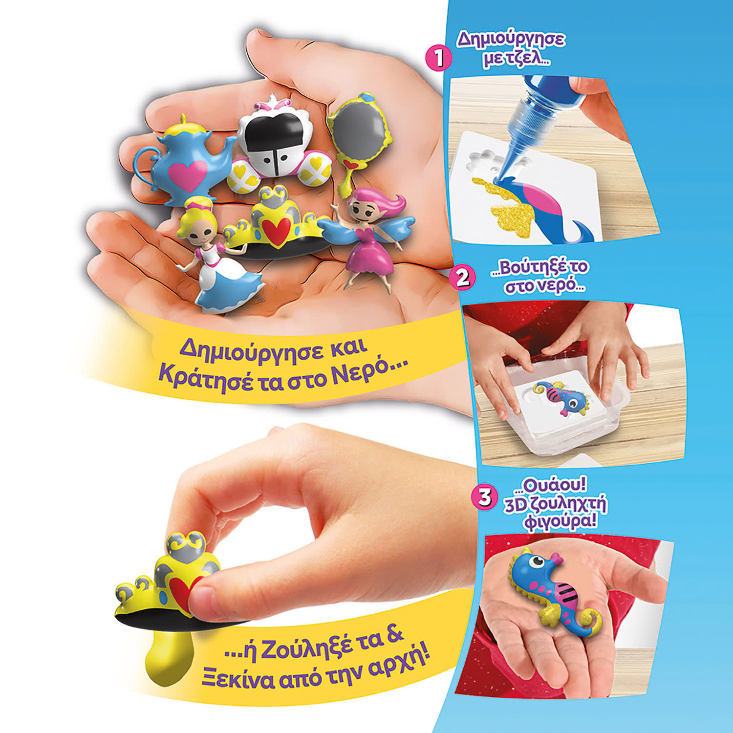 Φτιάξε τις δικές σου μαγικές φιγούρες με Aqua Gelz! Ανακάτεψε, σχεδίασε και βούτηξέ τες στο νερό για να πάρουν μορφή – διασκέδαση και δημιουργία σε κάθε σταγόνα!