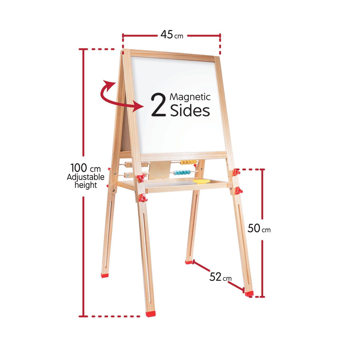 Ο μαγνητικός επιδαπέδιος πίνακας Wooden Magnetic Easel είναι ένας πρακτικός πίνακας που προσφέρει 3 μορφές απασχόλησης για το παιδί: - Ζωγραφική σε πίνακα μαρκαδόρου - Ζωγραφική με κιμωλίες - Παιχνίδι με μαγνήτες και στις δύο πλευρές του.
