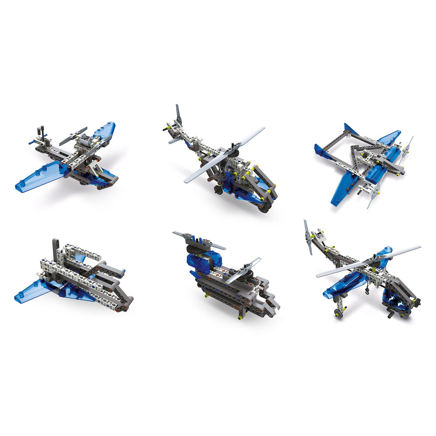 Ένα φανταστικό σετ για να ανακαλύψει το παιδί την επιστήμη της Αεροναυτικής και τις θεμελιώδεις αρχές της αεροδυναμικής, μέσα από την κατασκευή ρεαλιστικών μοντέλων αεροπλάνων και ελικόπτερων. Περιλαμβάνει πάνω από 200 εξαρτήματα για τη συναρμολόγηση μερών όπως η άτρακτος, τα πάνελ, οι έλικες, τα γρανάζια, οι τροχαλίες. Περιέχει και 2 εικονογραφημένα εγχειρίδια οδηγιών που καθοδηγούν βήμα-βήμα το παιδί και περιλαμβάνουν πολλές ενδιαφέρουσες επιστημονικές πληροφορίες και γνώσεις.