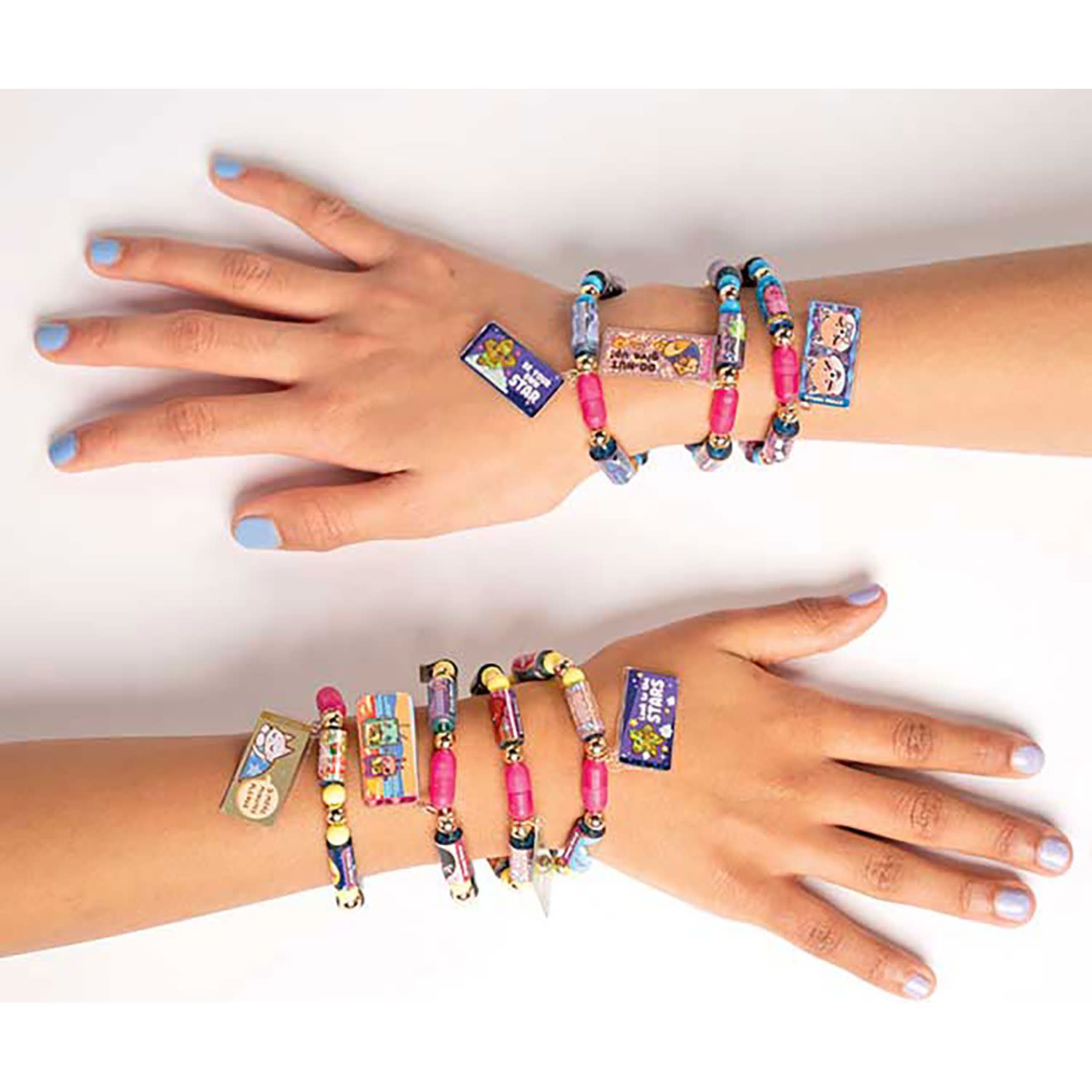 Βραχιολάκια με αυτοκολλητάκια! Κάθε βραχιολάκι είναι γεμάτο Sticki Rolls. Κάθε Sticki Roll αποτελείται από ένα ρολό με 10 μικρά, λαμπερά αυτοκόλλητα, τα οποία μπορείς να αφαιρέσεις εύκολα και να μοιραστείς με τους φίλους σου ή να τα χρησιμοποιήσεις για να διακοσμήσεις αντικείμενα, όπως για παράδειγμα το σημειωματάριό σου ή παγούρι σου. Τα αυτοκόλλητα έχουν όλα τα αγαπημένα σου θέματα. Φαγητό, σκυλάκια, γατάκια, BFFs και τόσα άλλα! Φόρεσέ τα, κόλλησέ τα, μοίρασέ τα!