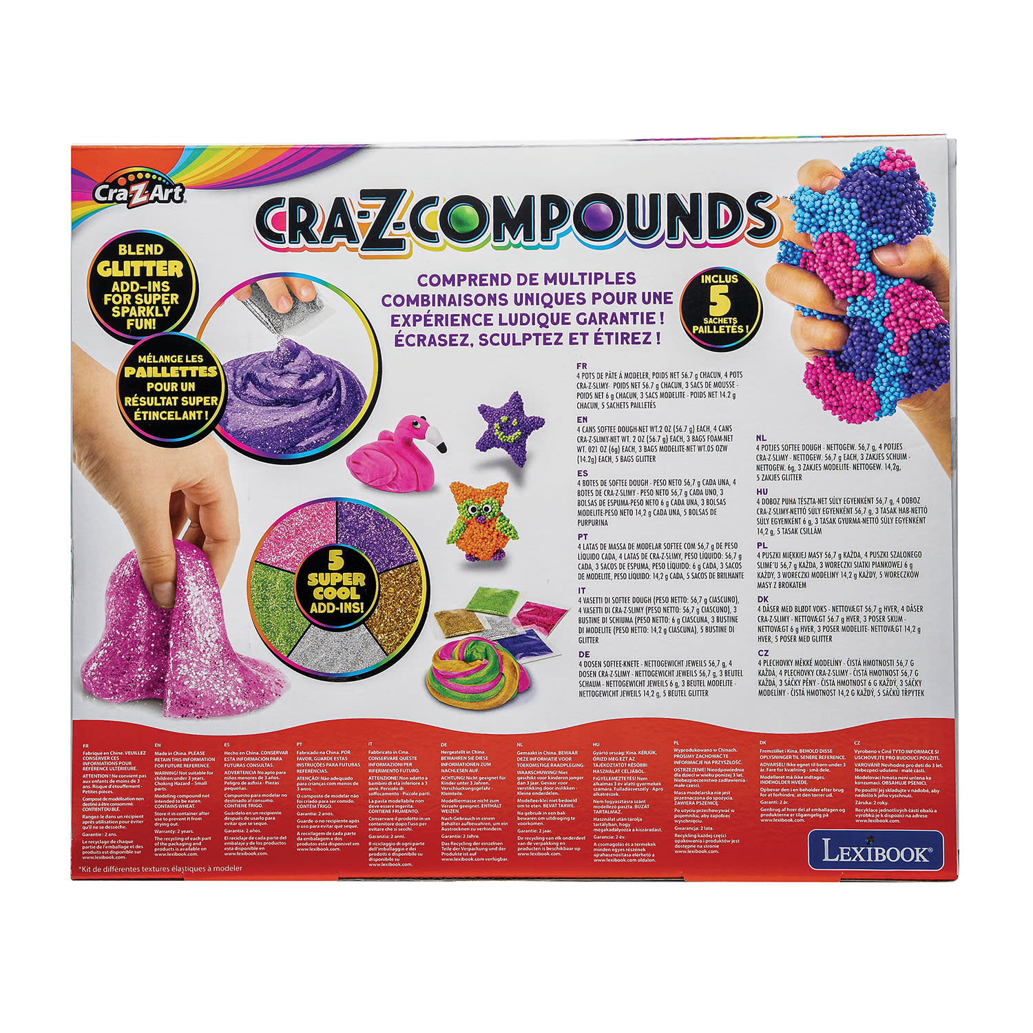 Ετοιμάσου για σούπερ διασκέδαση με αυτό το εκπληκτικό κιτ Cra-Z-Compounds με 5 πρόσθετα. Αυτό το πακέτο 4 ενώσεων περιλαμβάνει πολλαπλές, μοναδικές ενώσεις. Ανακάτεψε τις διάφορες ενώσεις, στρίμωξε, σμίλεψε και τέντωσε! Περιλαμβάνει 5 εξαιρετικά δροσερά πρόσθετα - ανακάτεψε glitter στις ενώσεις για αστραφτερό φινίρισμα!