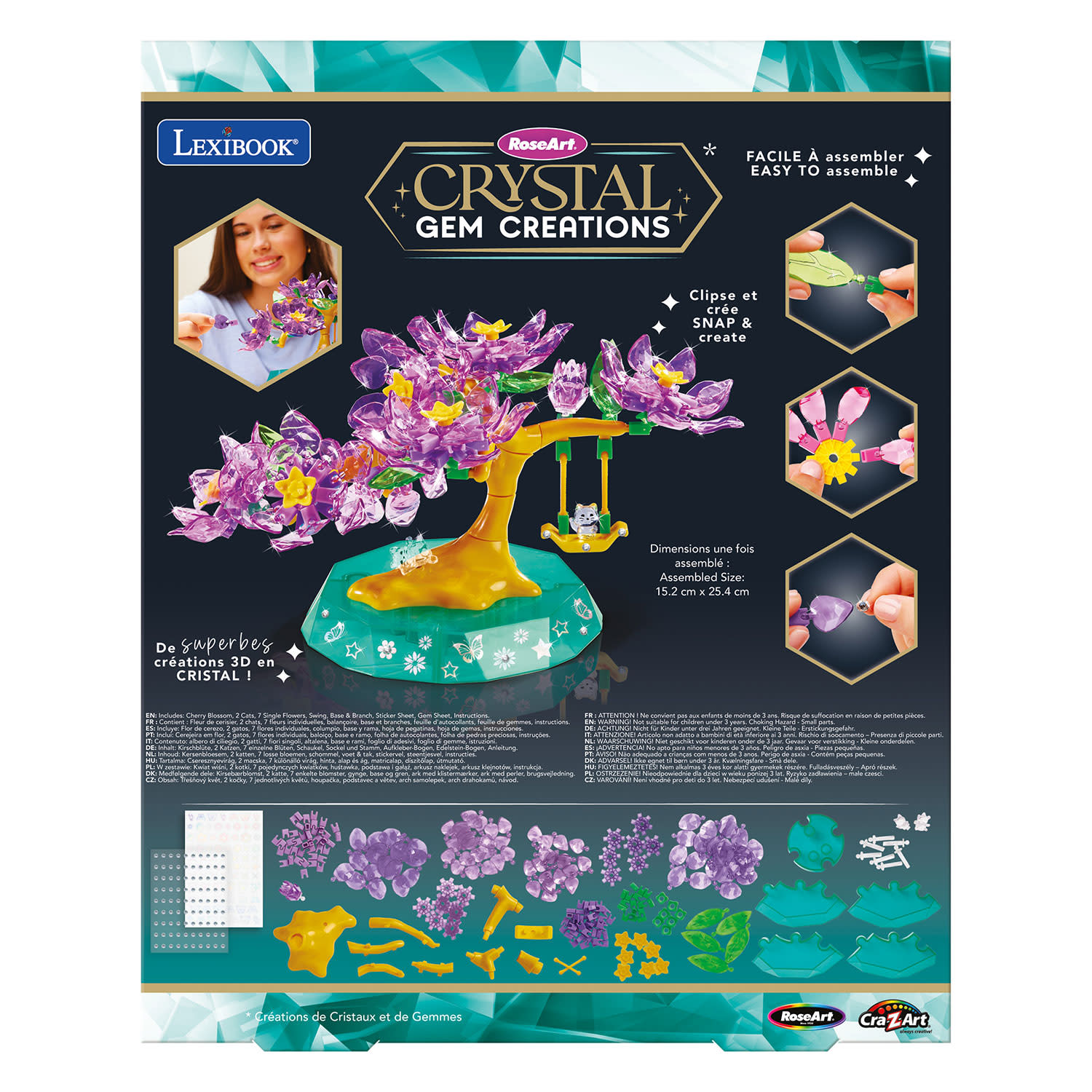 Εύκολα στο snap και στη δημιουργία! Τα όμορφα σχέδια δημιουργούνται κατασκευάζοντας πολυεπίπεδα κομμάτια από πολυεδρικά, πετάλια και φύλλα που μοιάζουν με πολύτιμους λίθους σε διάφορα μήκη και διαφανείς αποχρώσεις χρωμάτων. Οι ολοκληρωμένες δημιουργίες φαίνονται ρεαλιστικές και μοναδικές, καθιστώντας τες ιδανικά κεντρικά κομμάτια για κάθε δωμάτιο. Ενίσχυσε το εφέ λάμψης με πολύτιμους λίθους και μεταλλικά αυτοκόλλητα.
