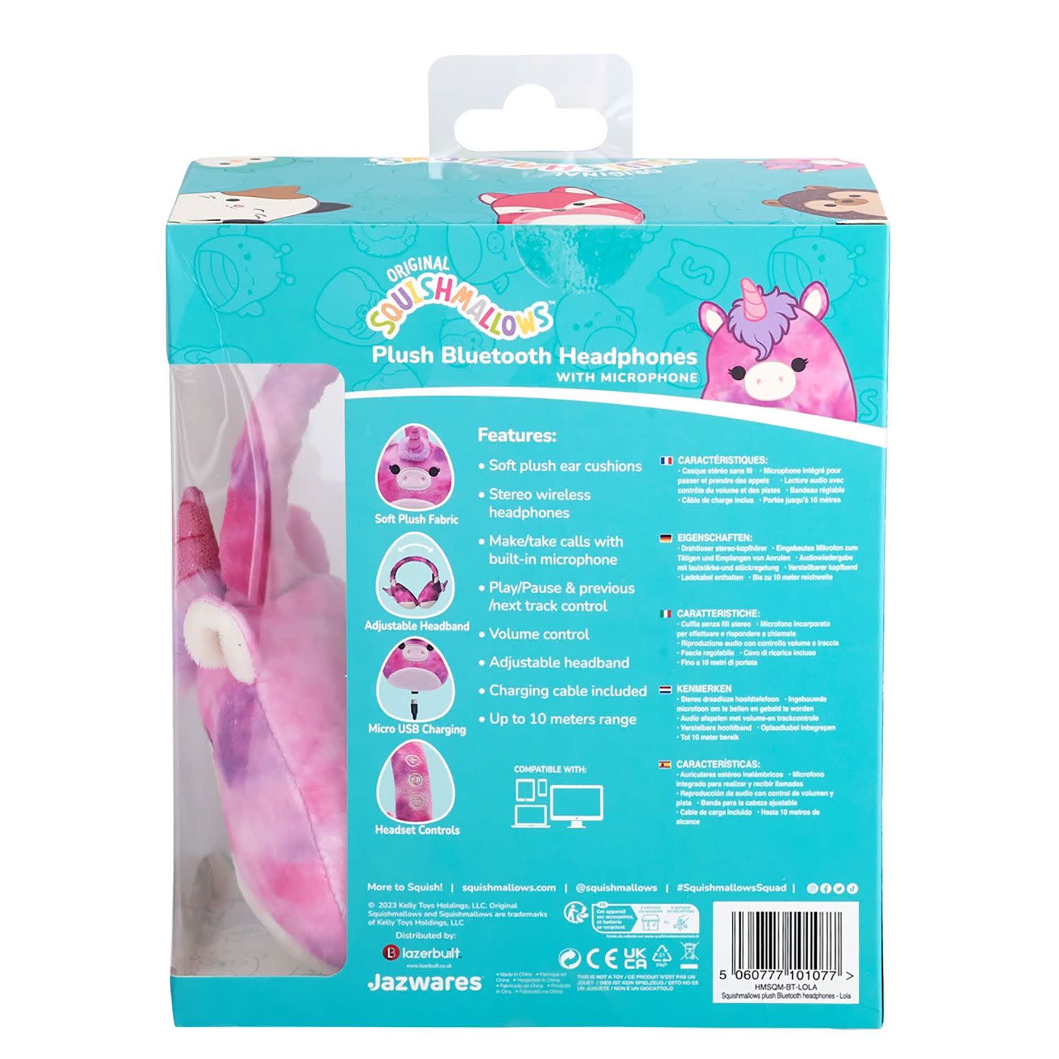Lazerbuilt Squishmallows Lola the Unicorn – Λούτρινα Ασύρματα Παιδικά Ακουστικά με Μικρόφωνο