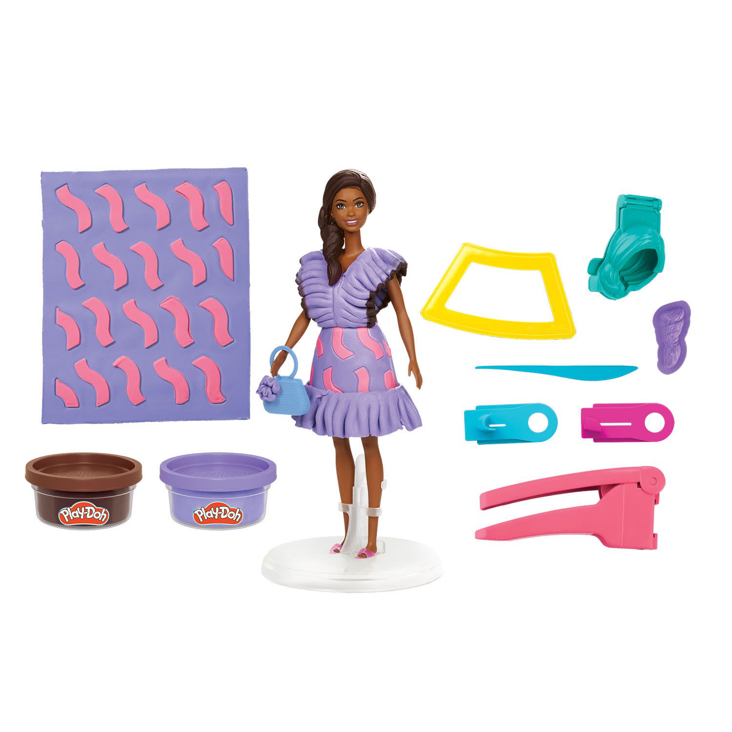 Είναι εύκολο και διασκεδαστικό να φτιάξεις ρούχα Barbie με αυτό το σετ τέχνης και χειροτεχνίας Play-Doh. Τοποθέτησε την κούκλα στη βάση, χρησιμοποίησε το φύλλο Play-Doh με σχέδια και τα καλούπια για να φτιάξεις τέλεια, girly φορέματα και να ντύσεις τη Barbie με τους πιο δημιουργικούς τρόπους. Δημιούργησε διαφορετικά χτενίσματα με το καλούπι μαλλιών ή αφήστε τα παιδιά να τα φτιάξουν με τα χέρια τους. Πρόσθεσε αξεσουάρ Barbie, όπως τσάντα και παπούτσια για να ολοκληρώσεις το look της. Συνέχισε τη φανταστική δημιουργικότητα με 2 βαζάκια Play-Doh για να προσθέσεις ακόμα περισσότερες λεπτομέρειες. Ιδανικό δώρο για παιδιά που αγαπούν τα σετ Barbie και τα παιχνίδια Play-Doh!