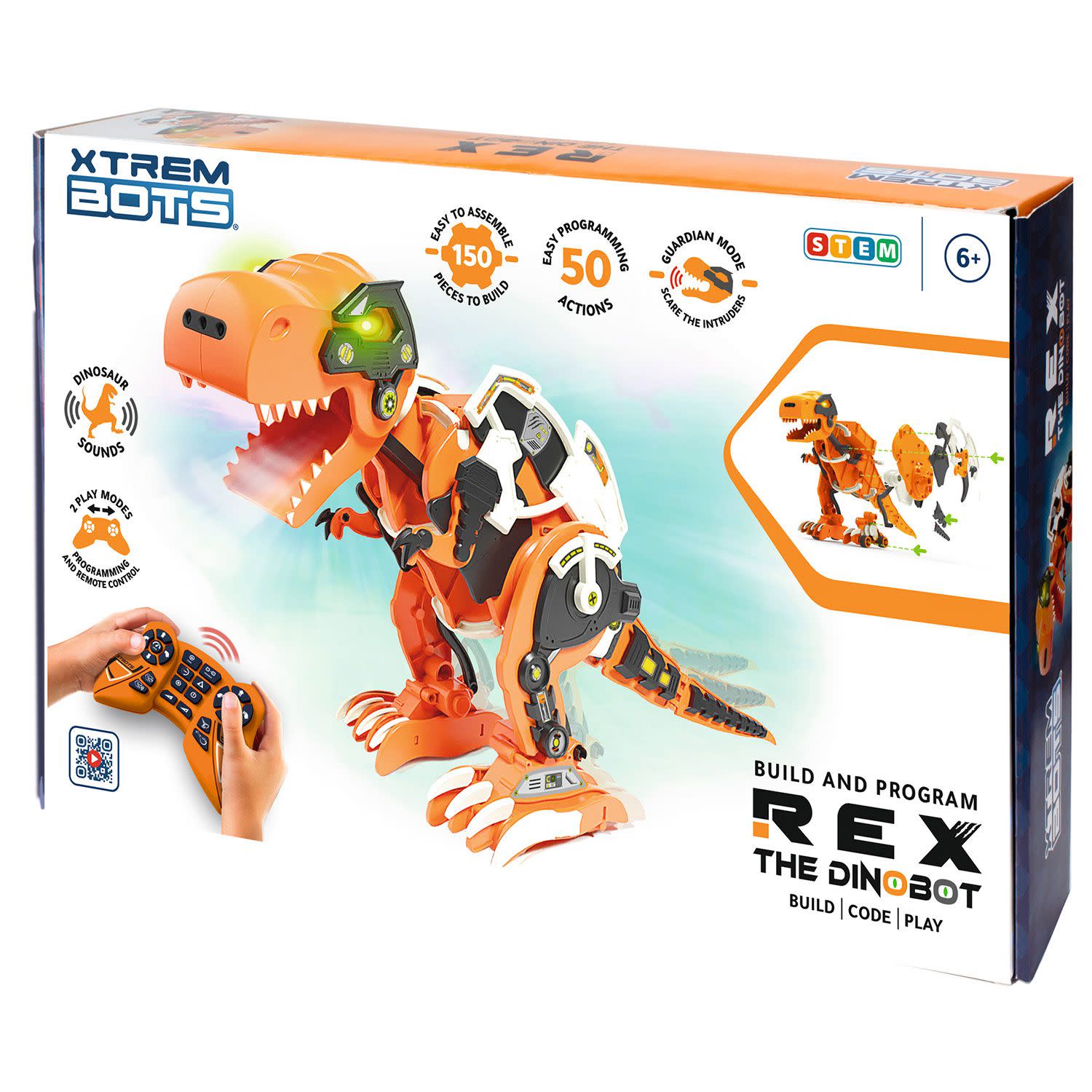 Κατασκεύασε, προγραμμάτισε και παίξε με τον Rex τον τυραννόσαυρο! Διαθέτει 150 κομμάτια για συναρμολόγηση του Rex και του τηλεχειριστηρίου, ρεαλιστικούς ήχους δεινοσαύρων, μάτια που φωτίζουν και 20 λειτουργίες, για ατελείωτες ώρες διασκέδασης. Ο Rex θα είναι ο φύλακας του δωματίου σου και θα σε προστατεύει! Εσύ απλά ενεργοποίησε τη λειτουργία «Φύλακας» για να τρομάξεις τους εισβολείς με το βρυχηθμό του, όταν κάποιος θέλει να μπει στο δωμάτιό σου. Αλλά μην ανησυχείς, ο Rex δεν δαγκώνει! Απλά θα τους τρομάξει!