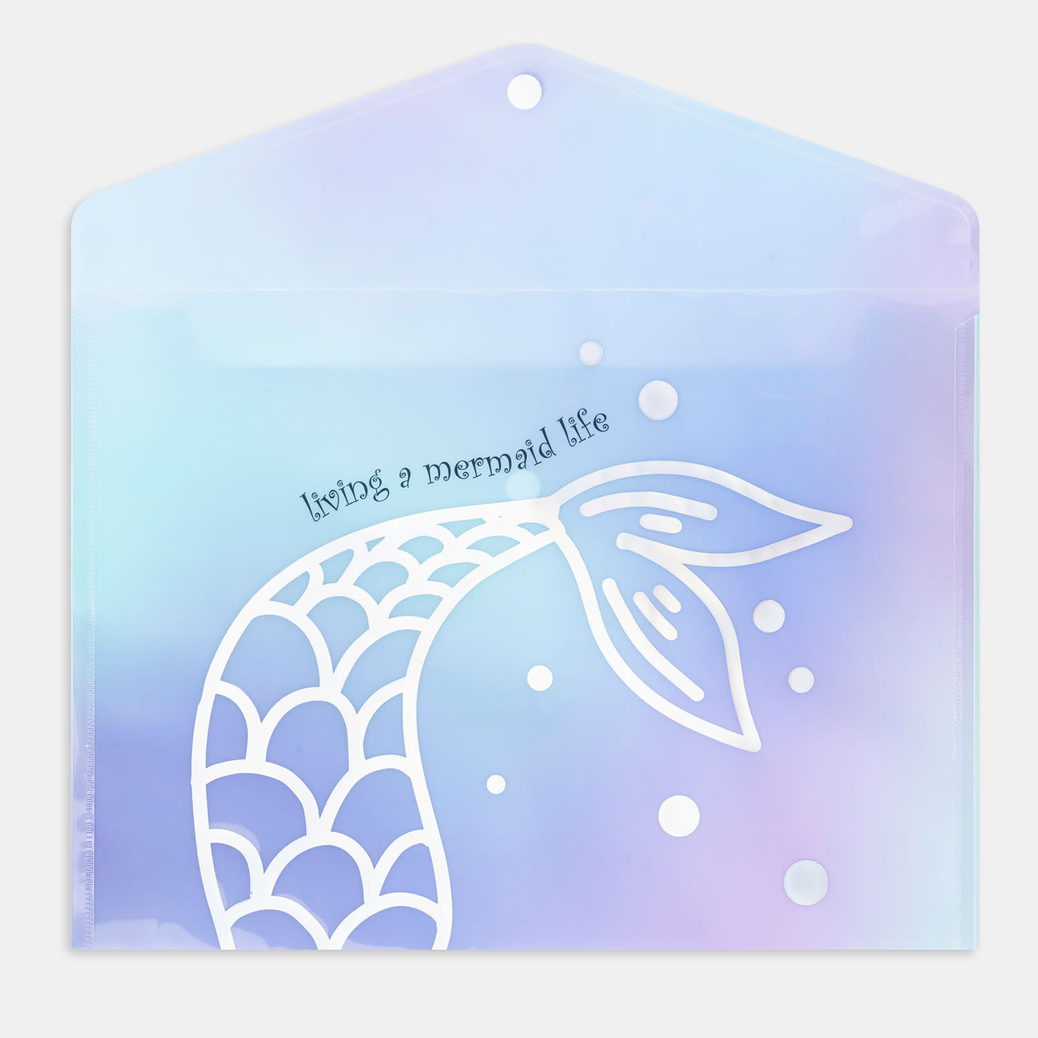 Οργάνωσε τις σημειώσεις, τις παρουσιάσεις, τις φωτοτυπίες, τις φωτογραφίες και ό,τι άλλο χρειάζεσαι για το σχολείο και την καθημερινότητά σου, συγκεντρώνοντάς τα στον φάκελο «Mermaid». Αποθήκευσε φύλλα διαστάσεων Α4 και τοποθέτησέ τον μέσα στην τσάντα σου για να τον έχεις ανά πάσα στιγμή μαζί σου. Είναι κατασκευασμένος από εύκαμπτο πλαστικό και διαθέτει κουμπί για να κλείνει με ασφάλεια.