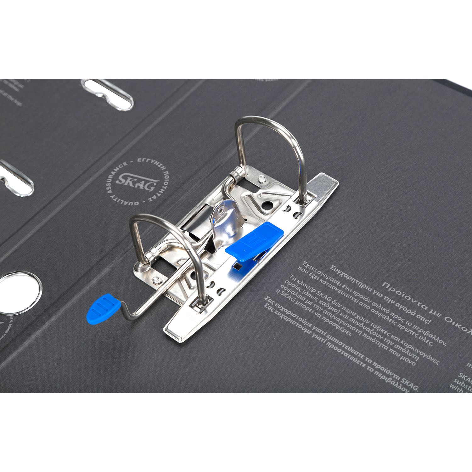 Διαθέτει μηχανισμό RADO που συγκρατεί έως και 350 φύλλα Α4, θήκη με ετικέτα στη ράχη και μεταλλικό κρίκο για την εύκολη αφαίρεσή του από το ράφι.
