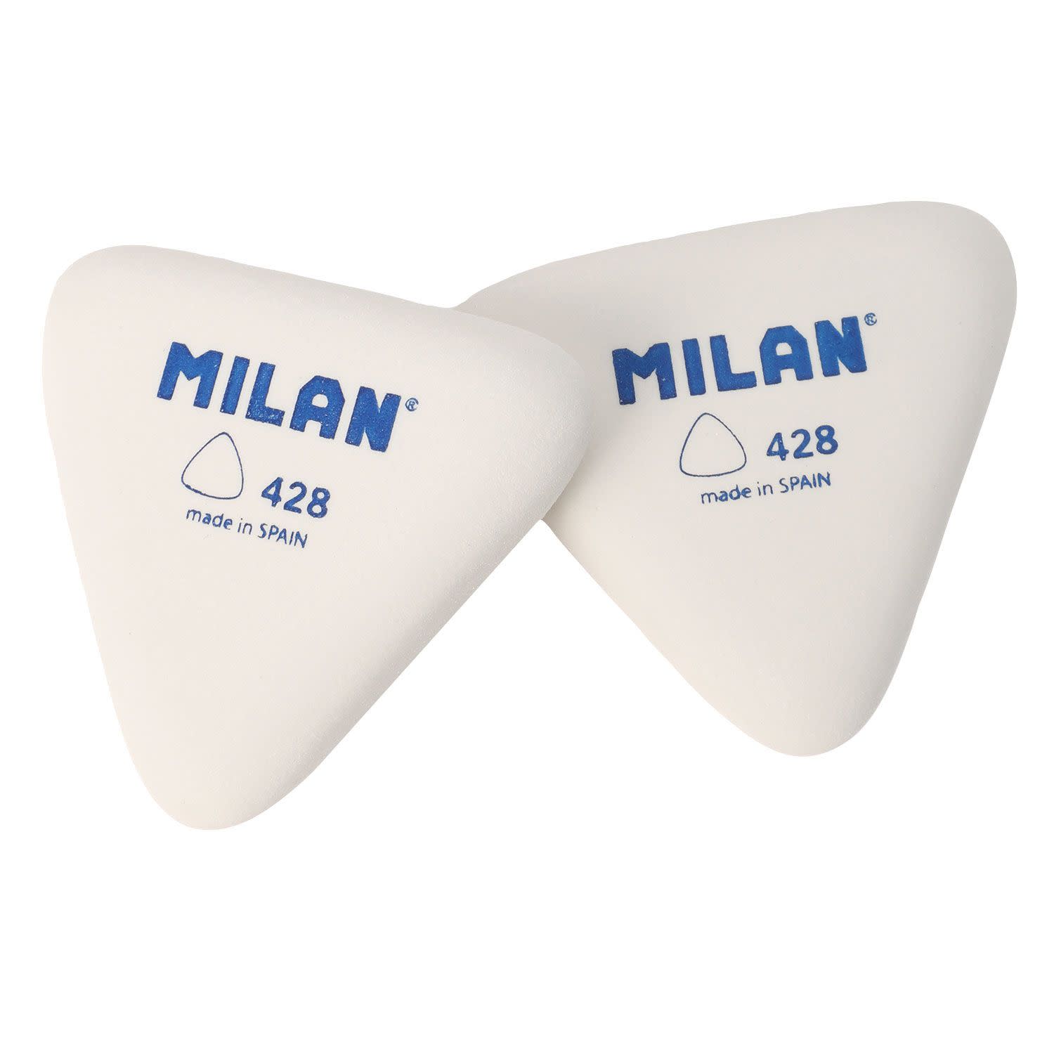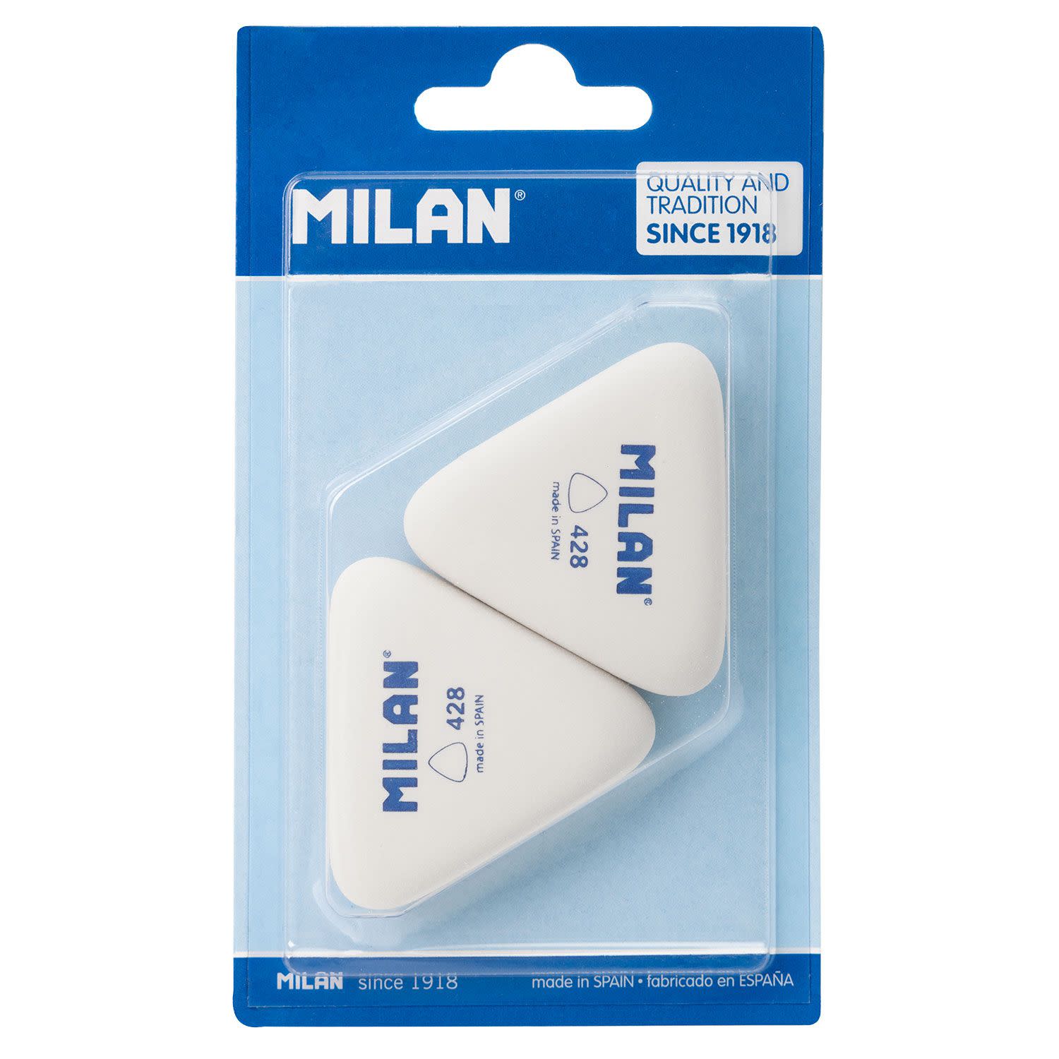 Σετ τριγωνικές γόμες από μαλακό συνθετικό καουτσούκ. Οι λευκές γόμες Milan είναι κατάλληλες για να σβήνεις όλα τα ''μολυβένια'' λάθη σου από όλους τους τύπους χαρτιού.