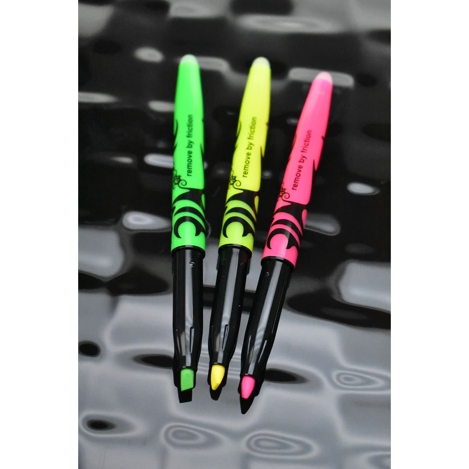 Μαρκαδόρος υπογράμμισης Frixion σε 4 μοναδικές αποχρώσεις. Είναι κατάλληλος για χαρτί, fax και φωτοτυπίες. Το thermosensitive μελάνι εξαφανίζεται με τη θερμότητα (+ 60°C) και επανεμφανίζεται με την ψύξη (-10°C). Με την ειδική «γόμα» σβήνεις χωρίς υπολείμματα, χωρίς ίχνη, αλλά και χωρίς να καταστρέφεται το χαρτί. Η λοξή μύτη προσφέρει ακρίβεια στην υπογράμμιση.